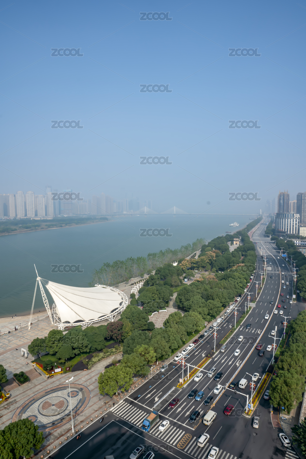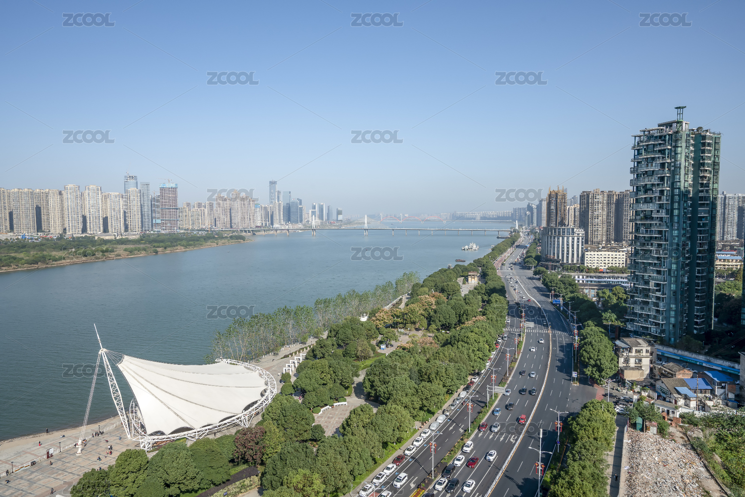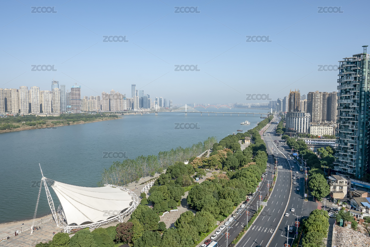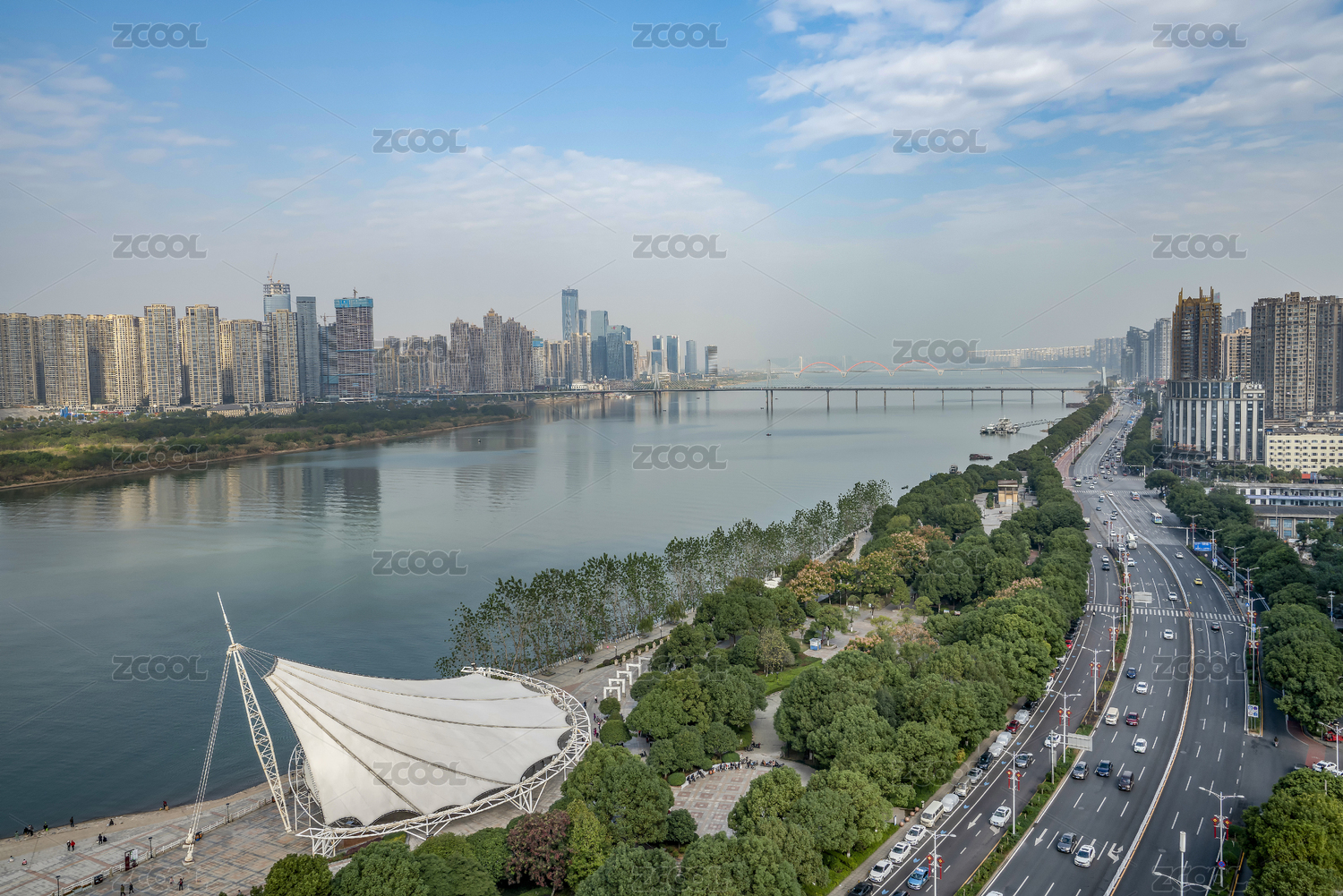 城市风光,城市天际线,远景,远眺,俯瞰,风帆广场,游轮,湘江,银盆岭大桥,福元路大桥