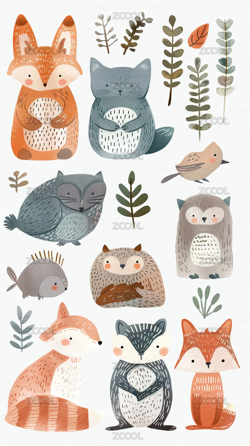 绘本风动物集合插画