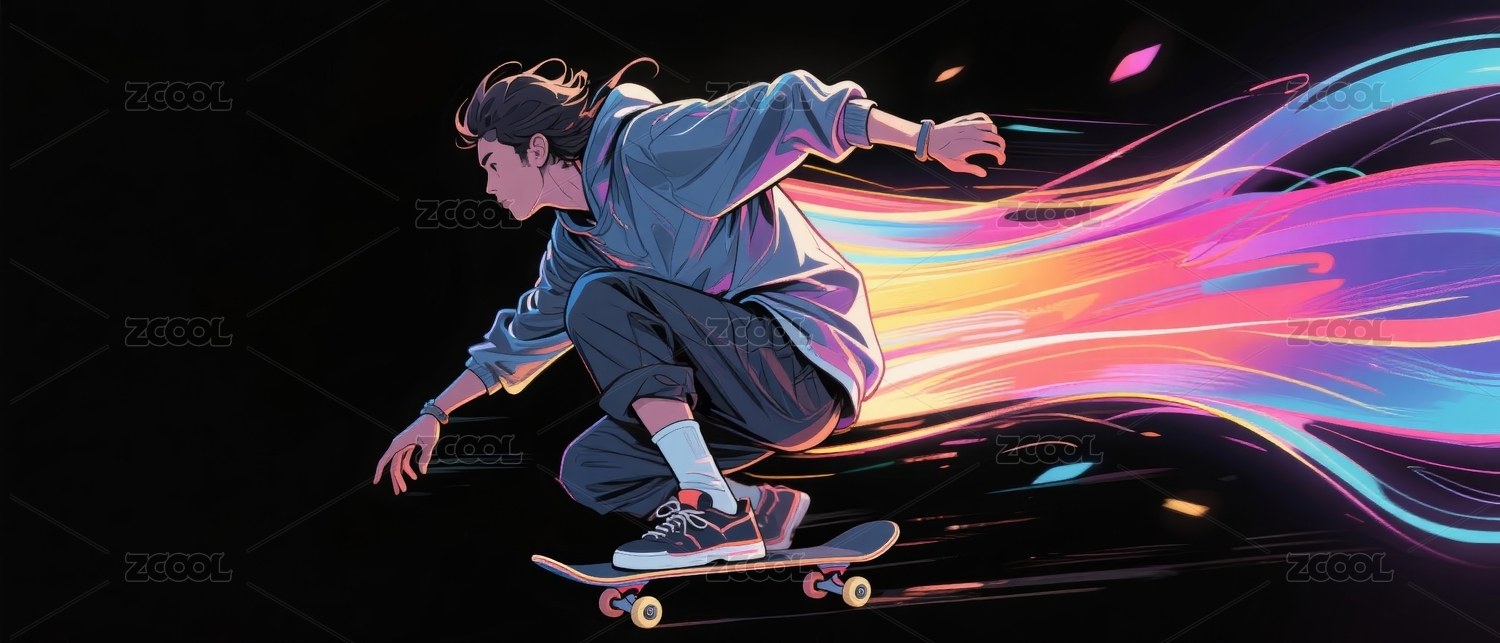 黑底黑背景彩色街舞跳舞的男性绘画插画