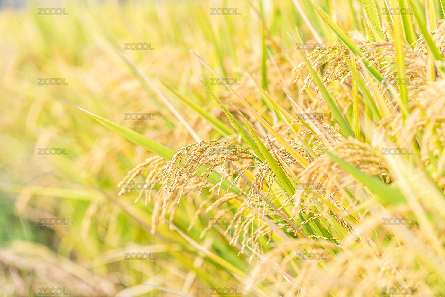 秋季即将成熟的一片水稻特写