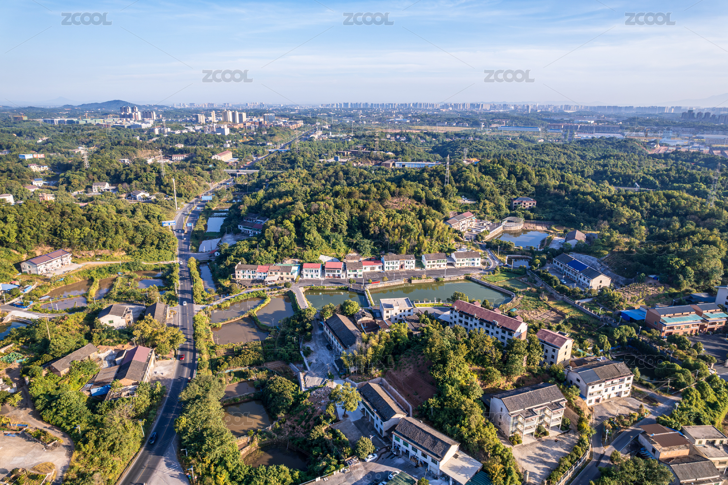湖南衡阳城镇乡村夏天早晨航拍风光