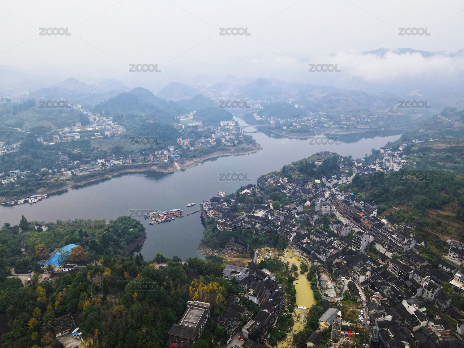航拍湖南湘西龙山县里耶古城及里耶秦简出土