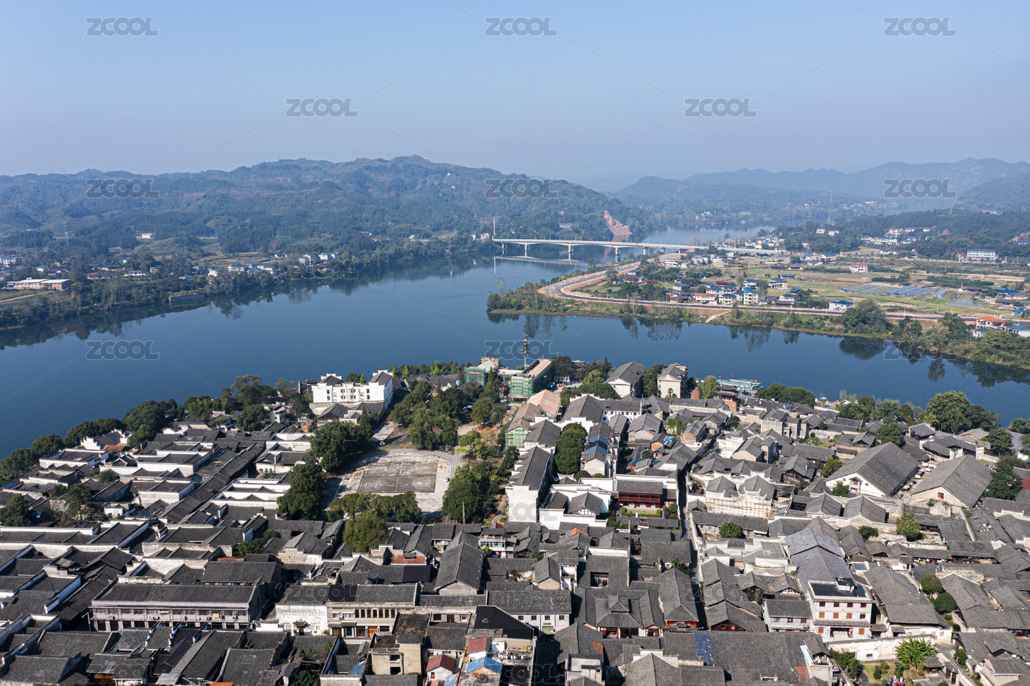 阆中市阆中古城城市风光白昼晴天高视角航拍