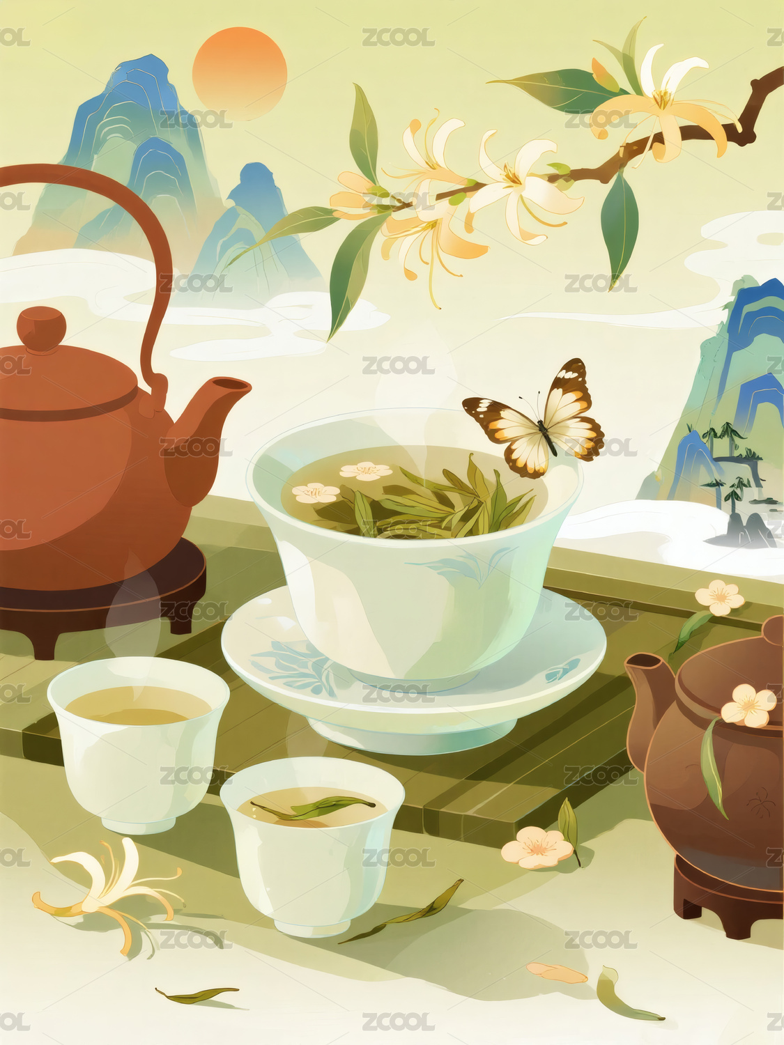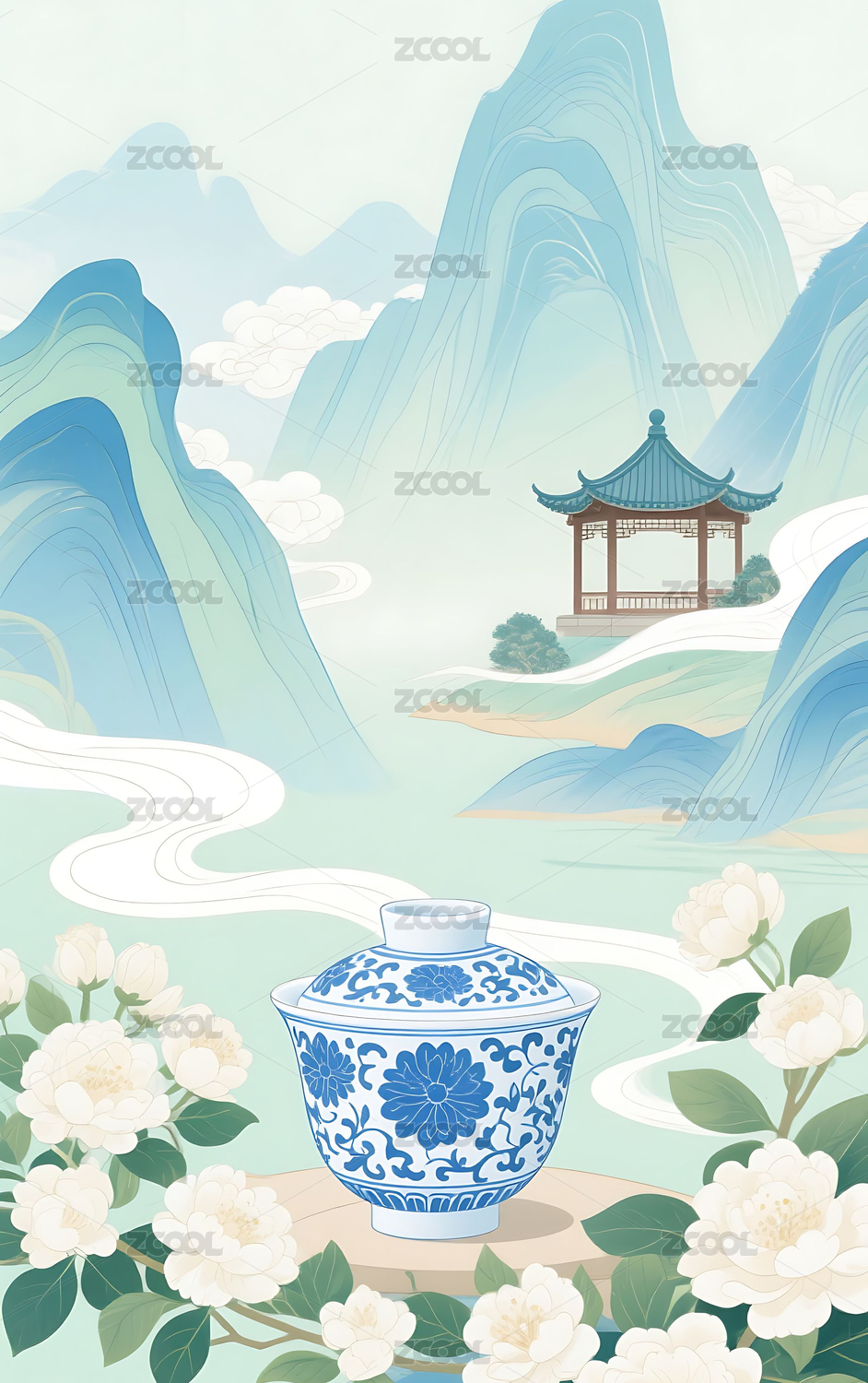 下午茶,茶文化,中式美学,古风,新工笔,茶壶,陶瓷,瓷器