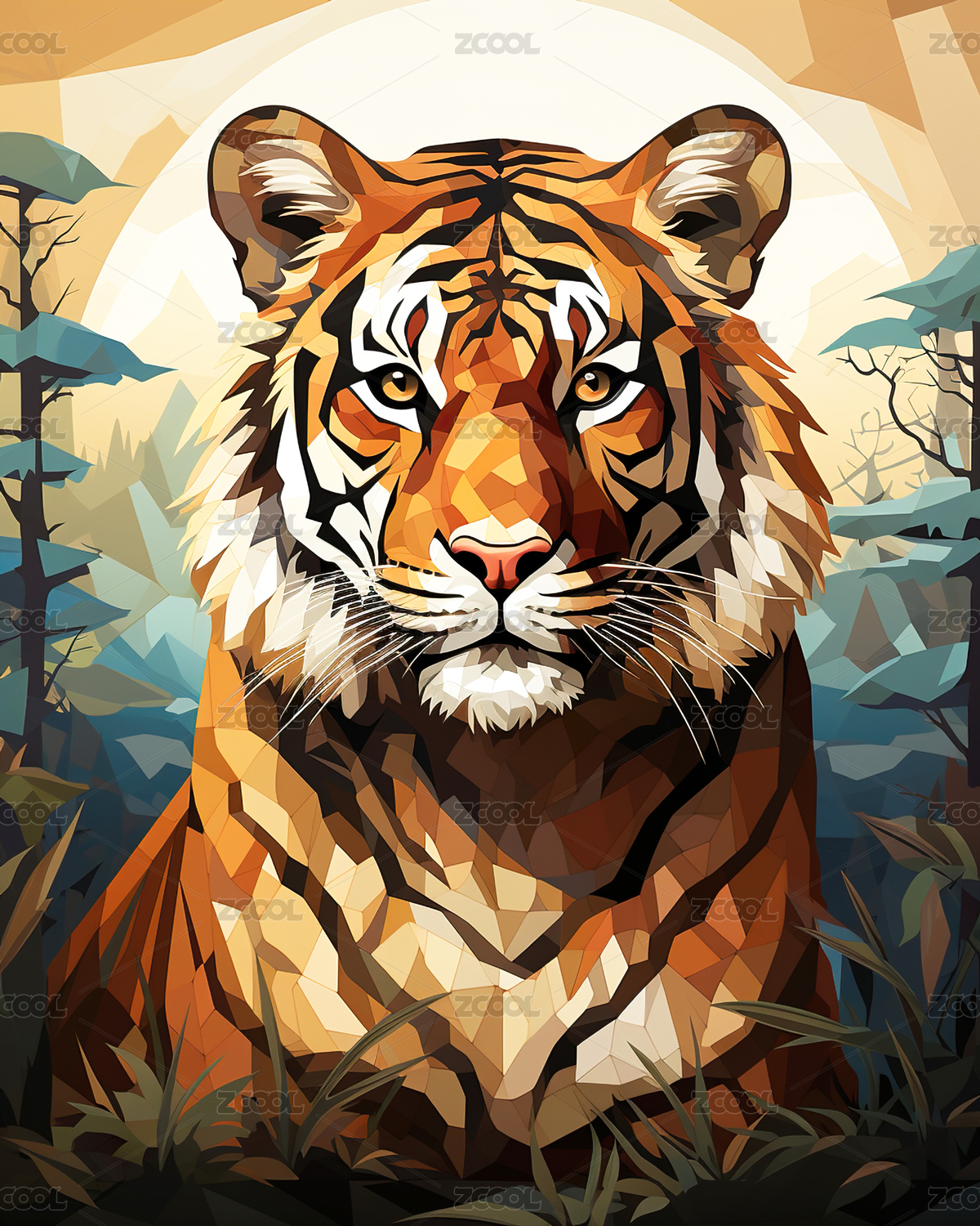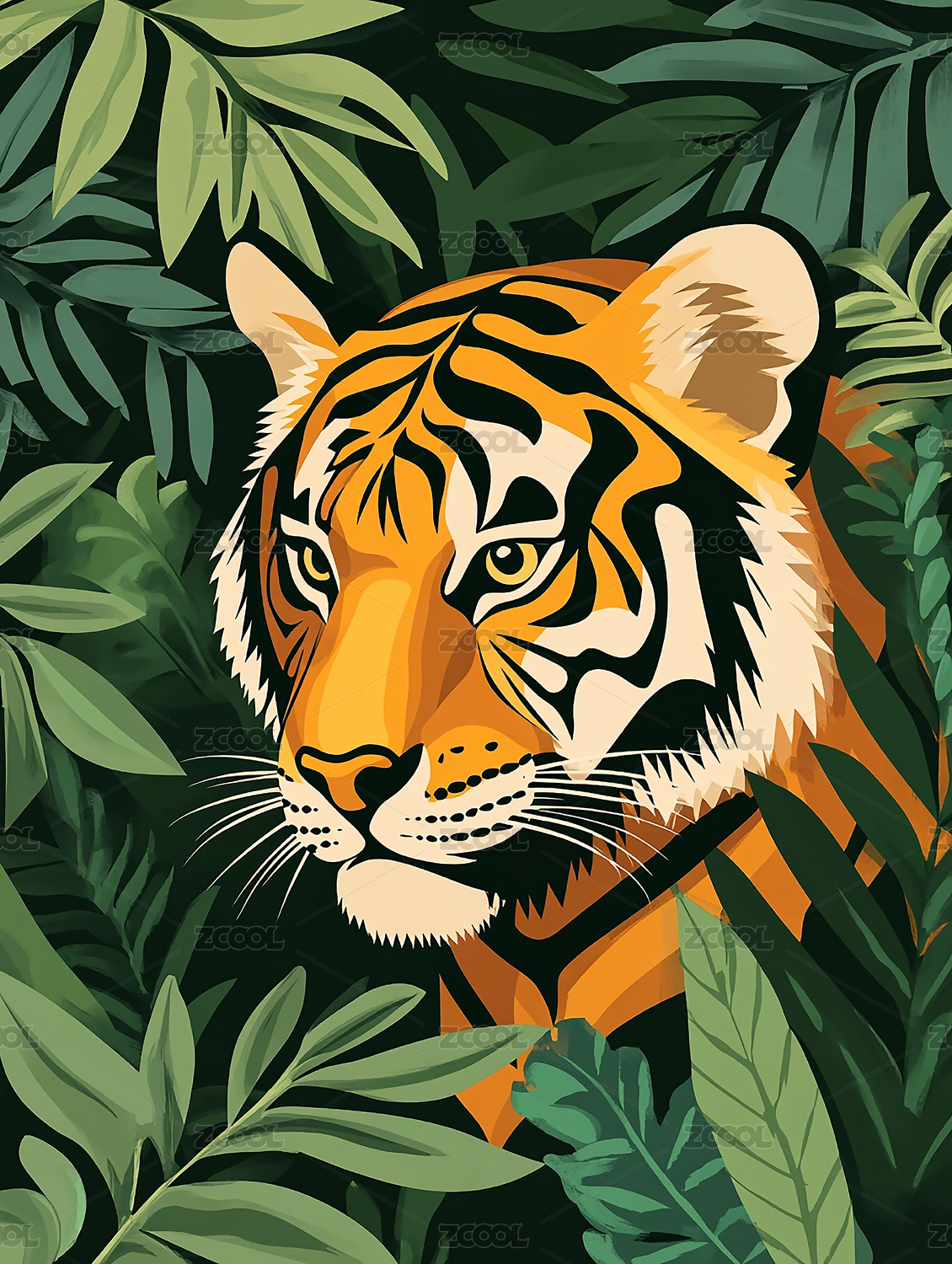 森林,猛虎,3D,虎,老虎,插画,凶猛