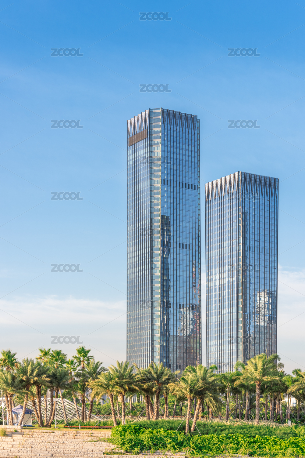 深圳福田cbd楼群蓝天白云阳光楼宇玻璃幕墙反光商务高清大图