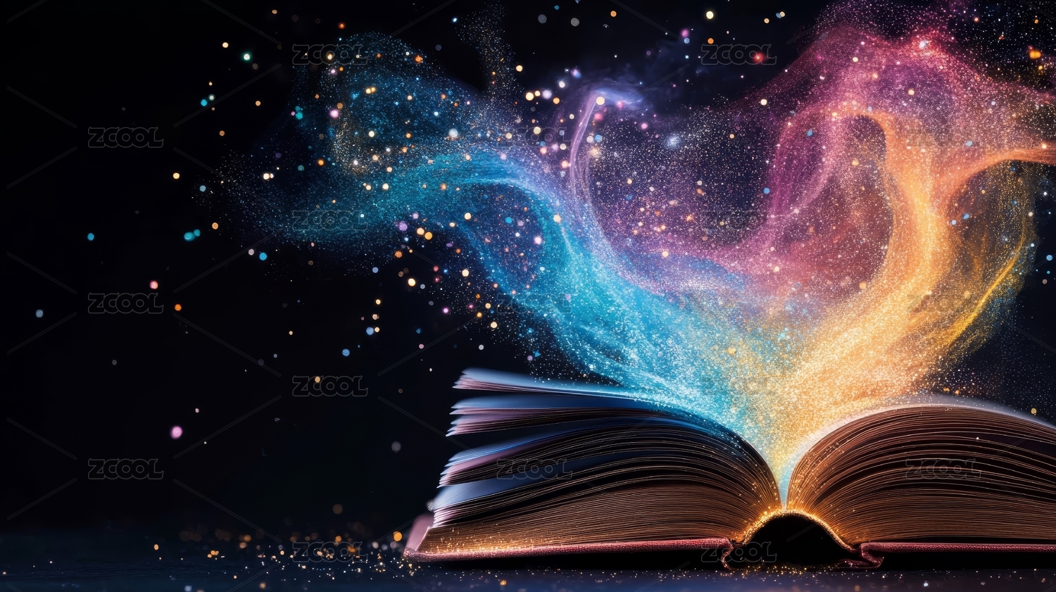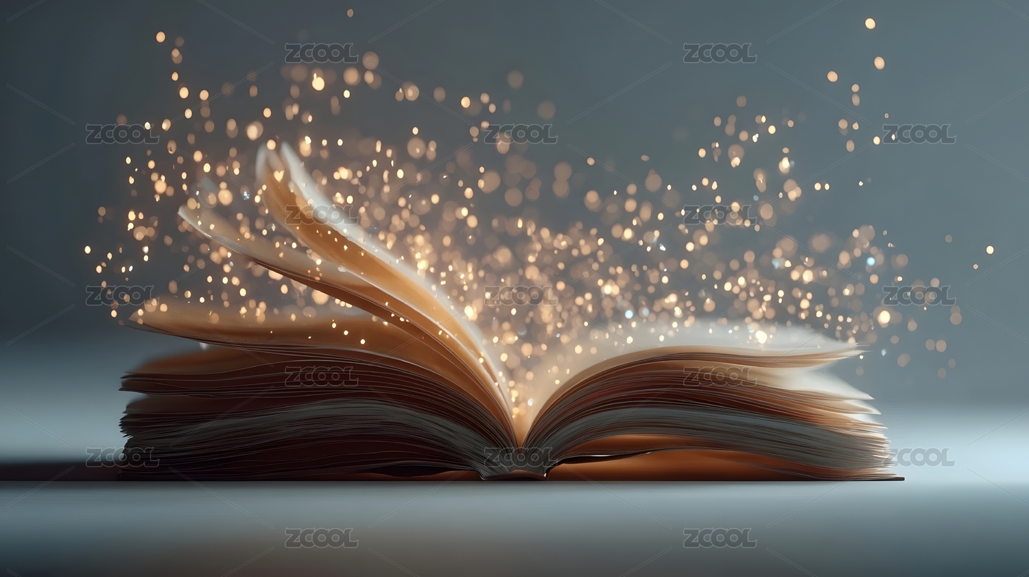 光粒子从书页间涌出的奇幻场景
