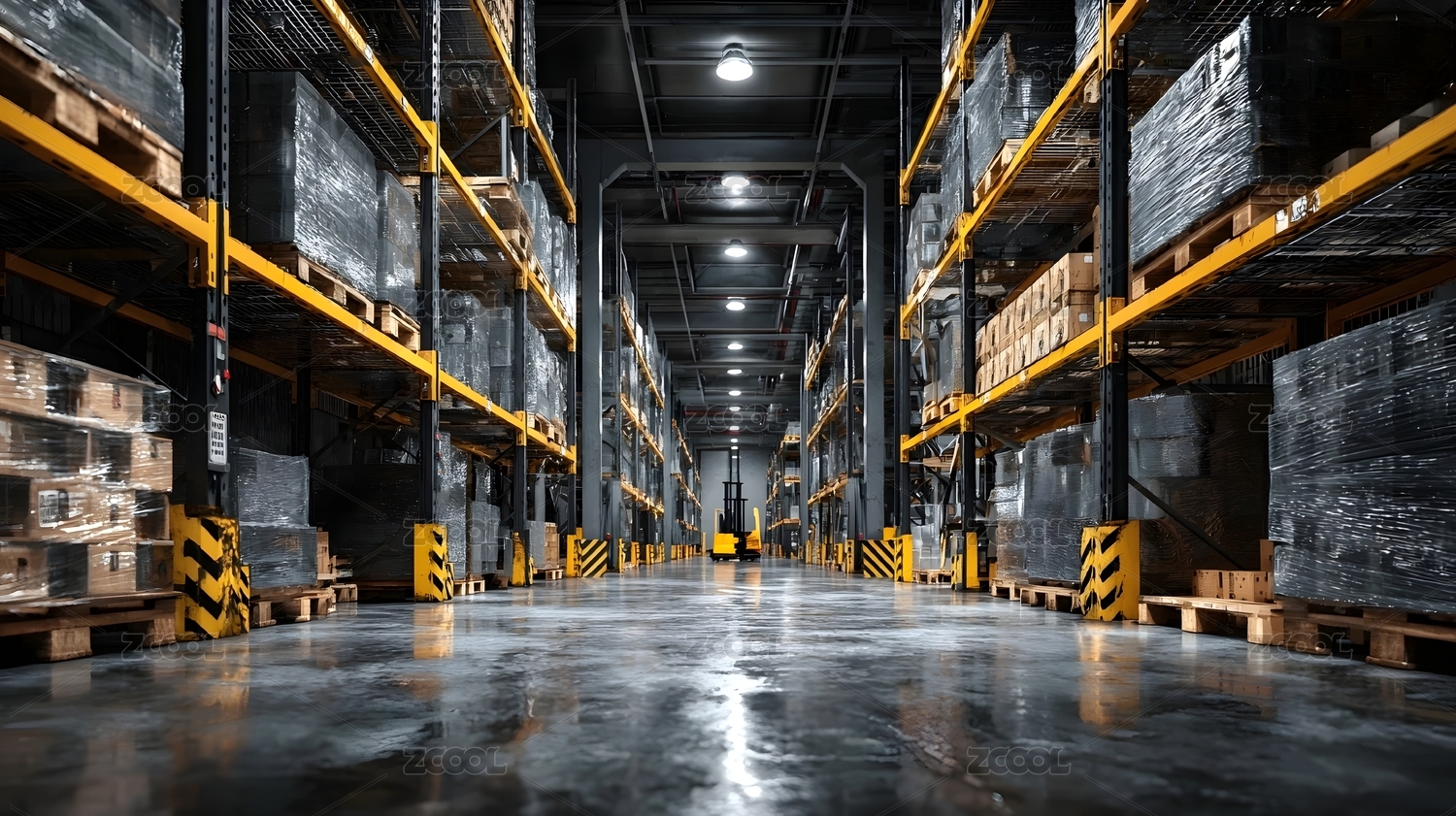 带叉车和托盘的仓库内部
