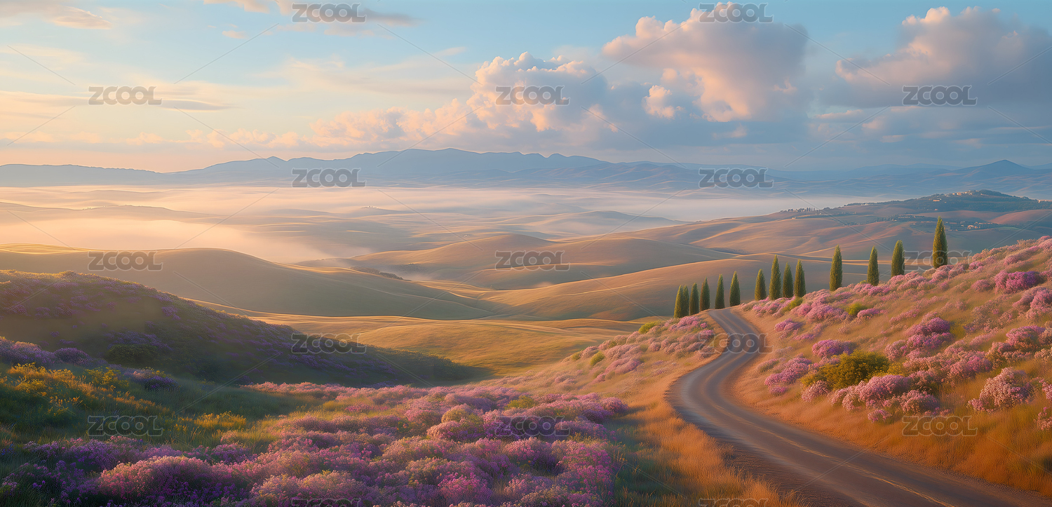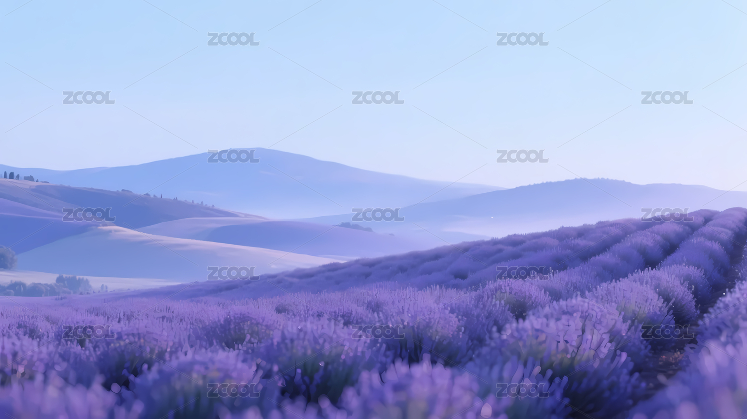 薰衣草,田野,花海,绿色,黄昏,夕阳,阳光,光线,彩霞,山丘