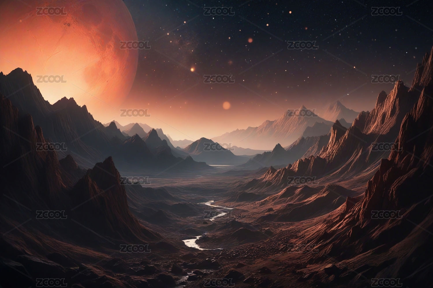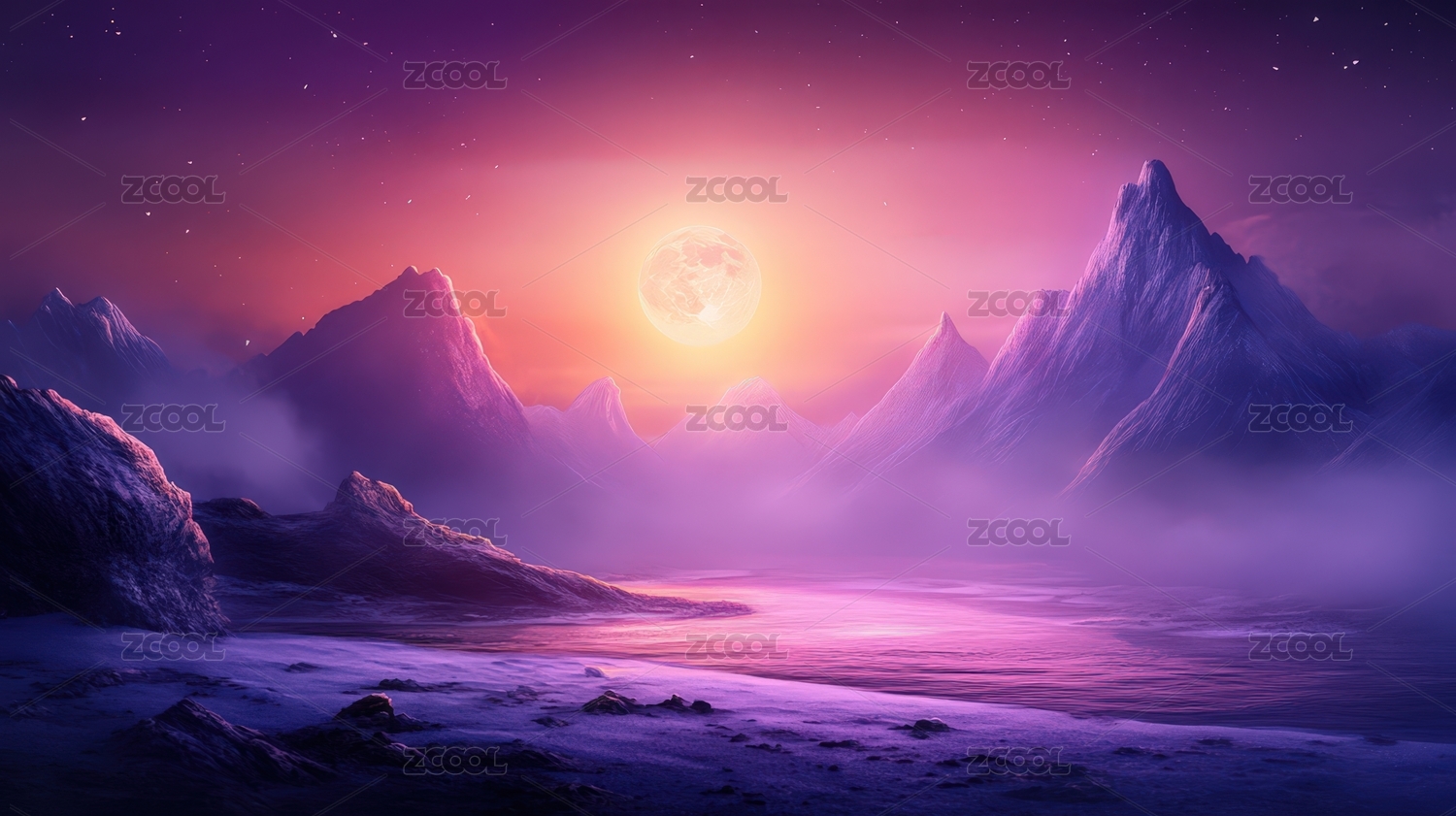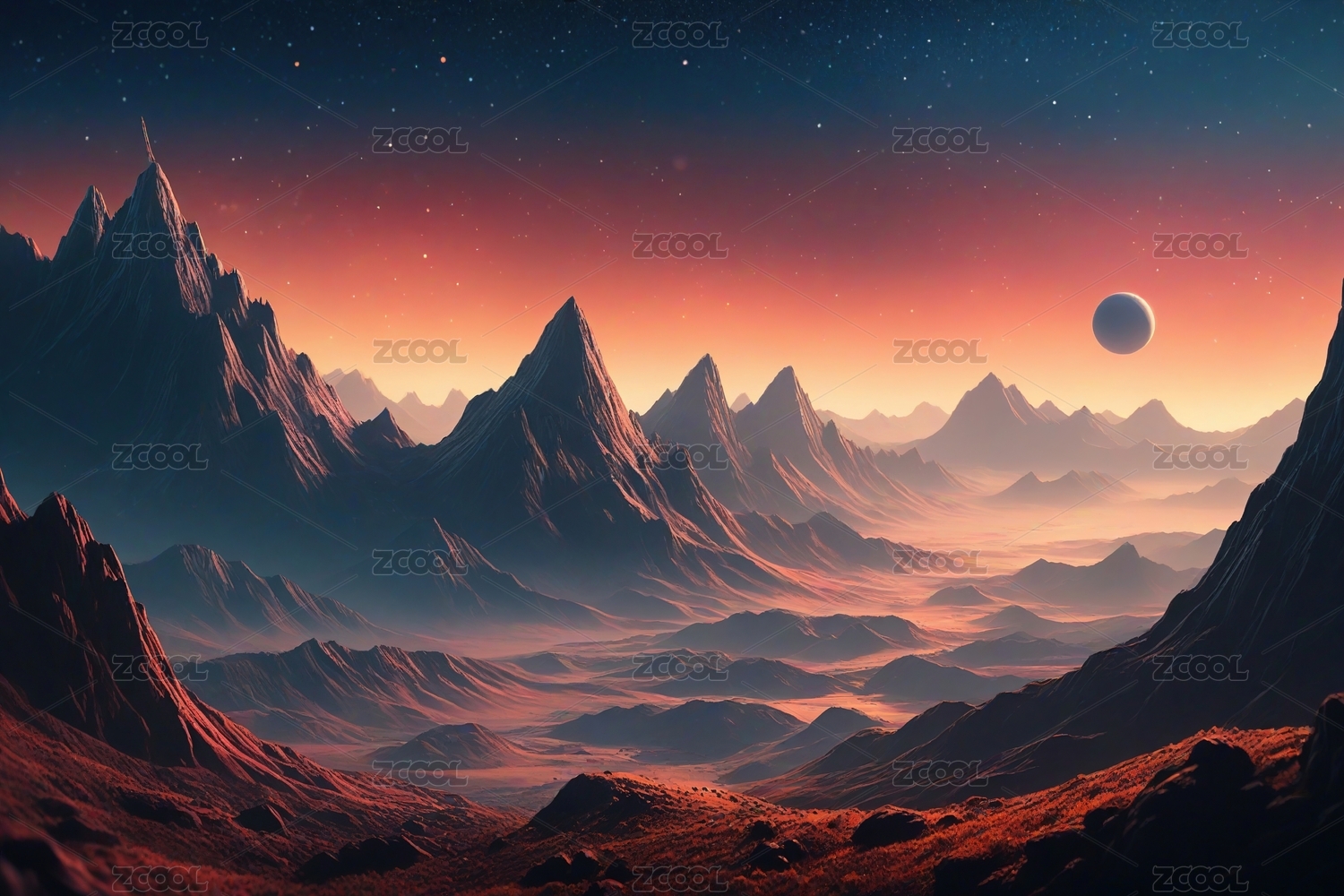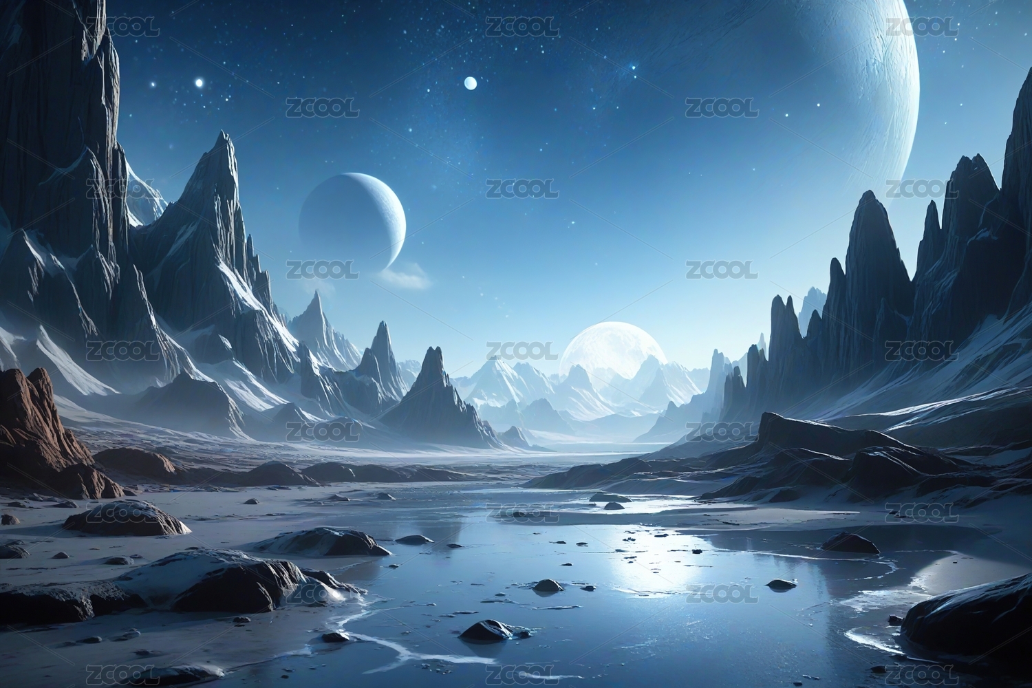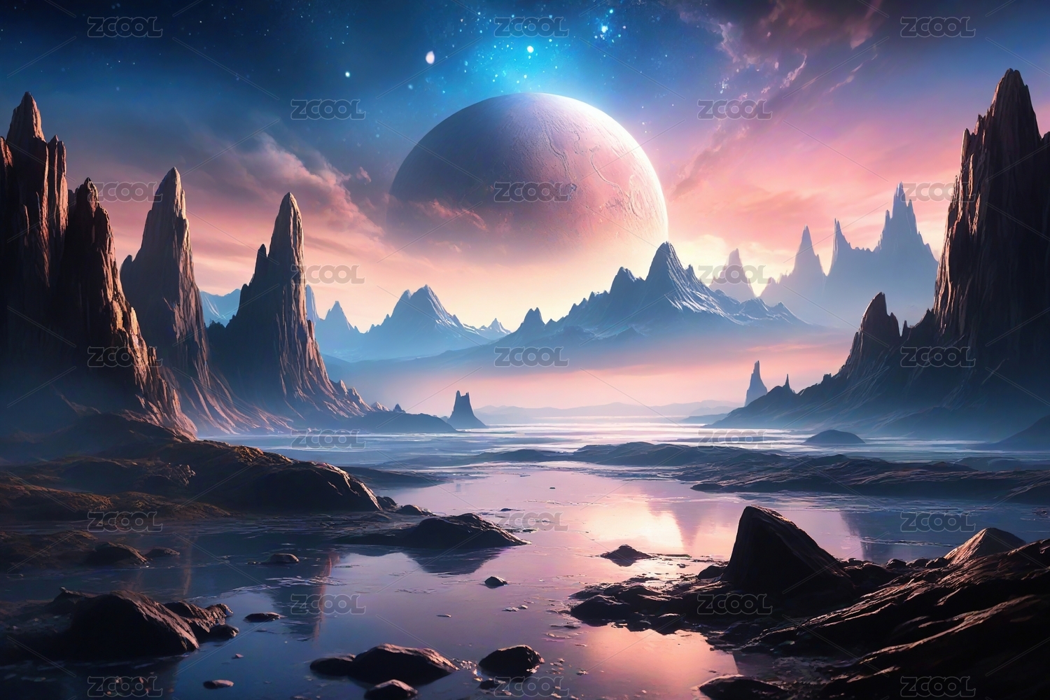 山峰,星星,月亮,湖水,反射,夜空,幻想,梦境,宇宙,星系
