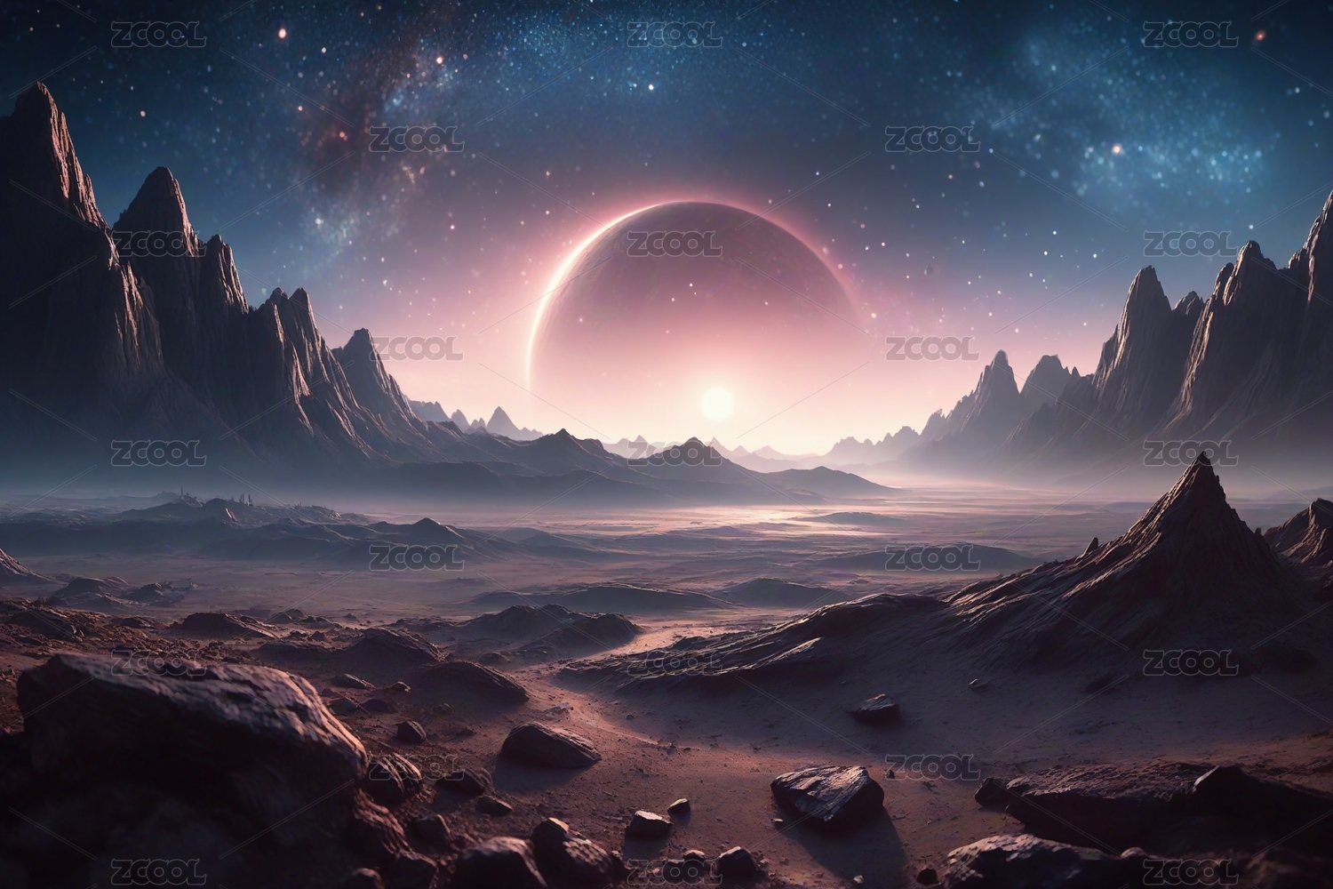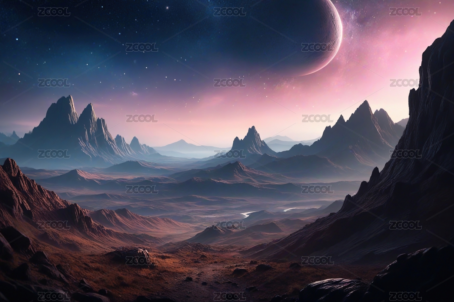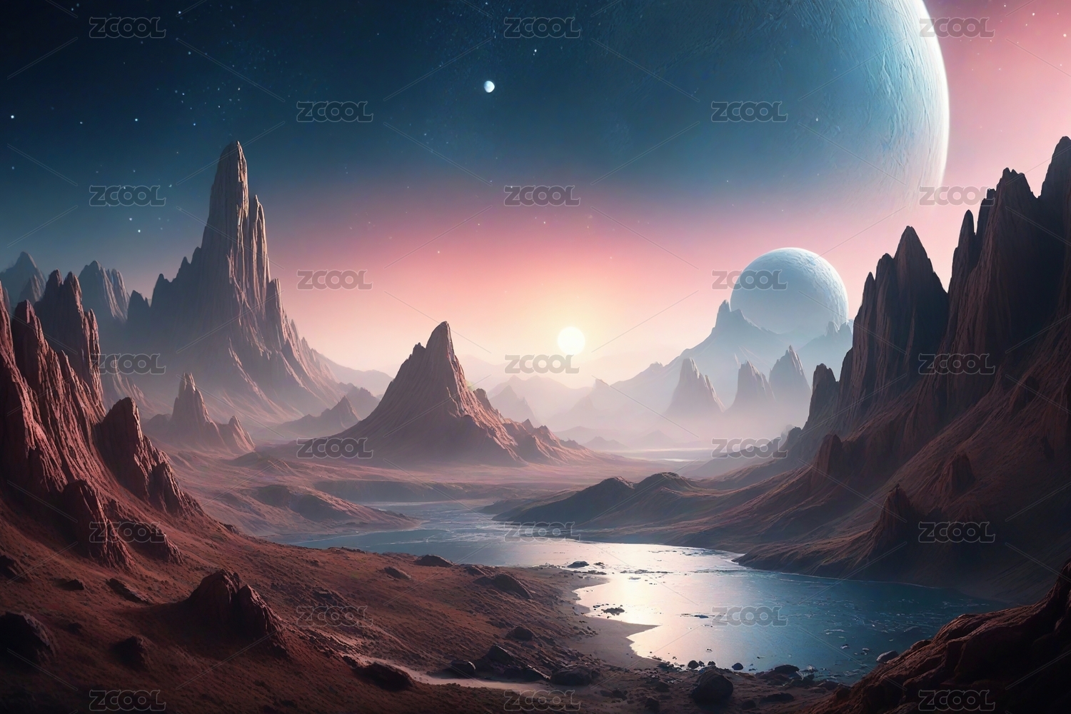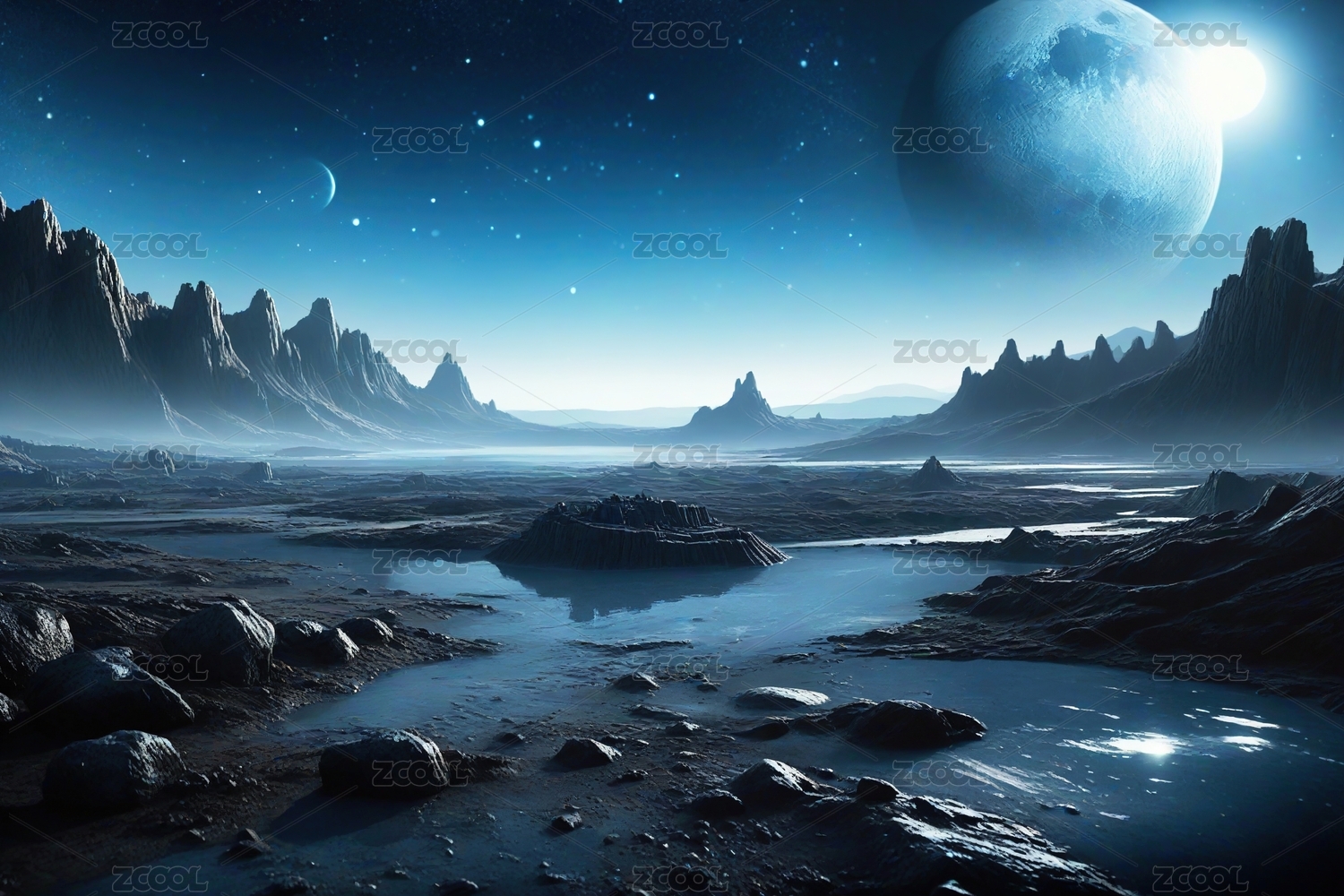 山峰,星星,月亮,湖水,反射,夜空,幻想,梦境,宇宙,星系