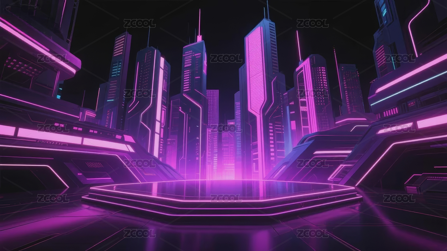 赛博朋克科幻城市建筑主视觉背景壁纸