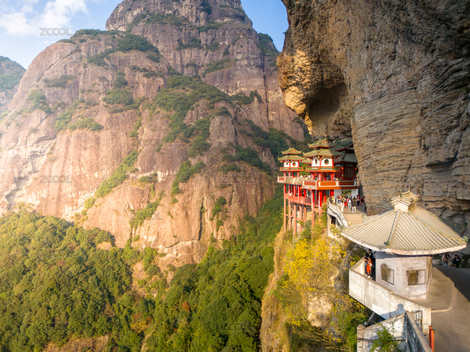 福建省漳州市平和县灵通山悬崖上的古建筑