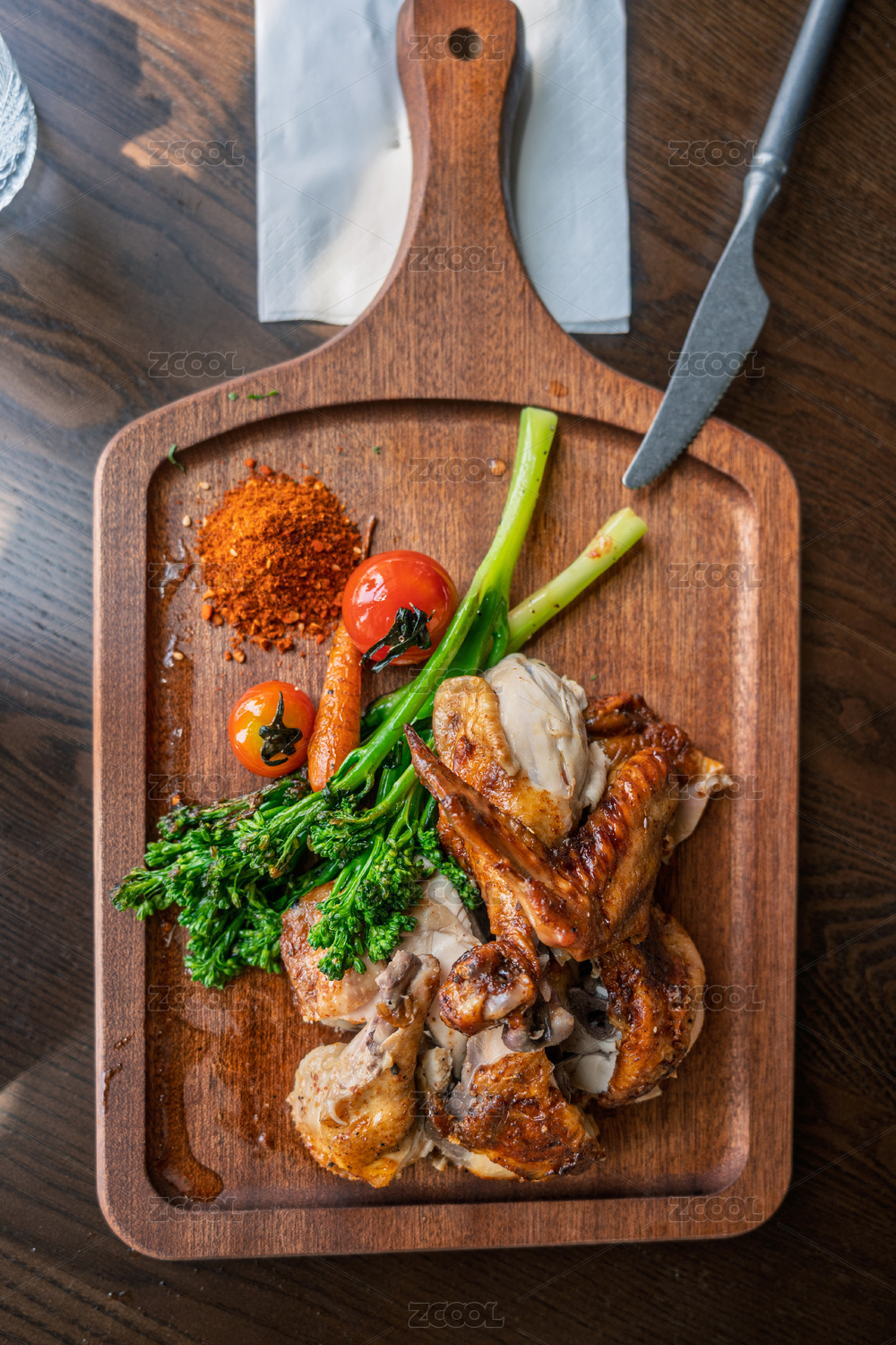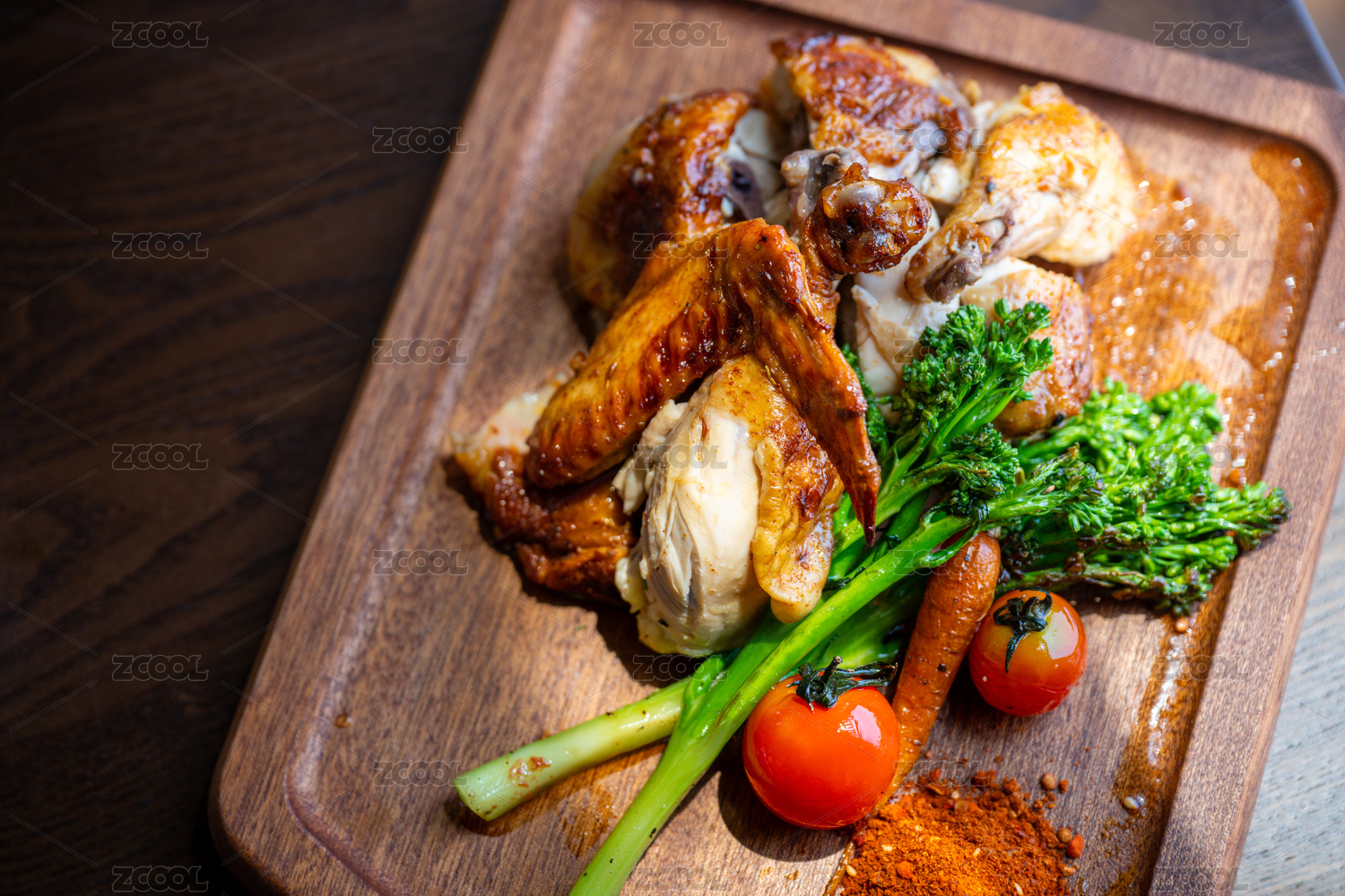 美味烤鸡配蔬菜