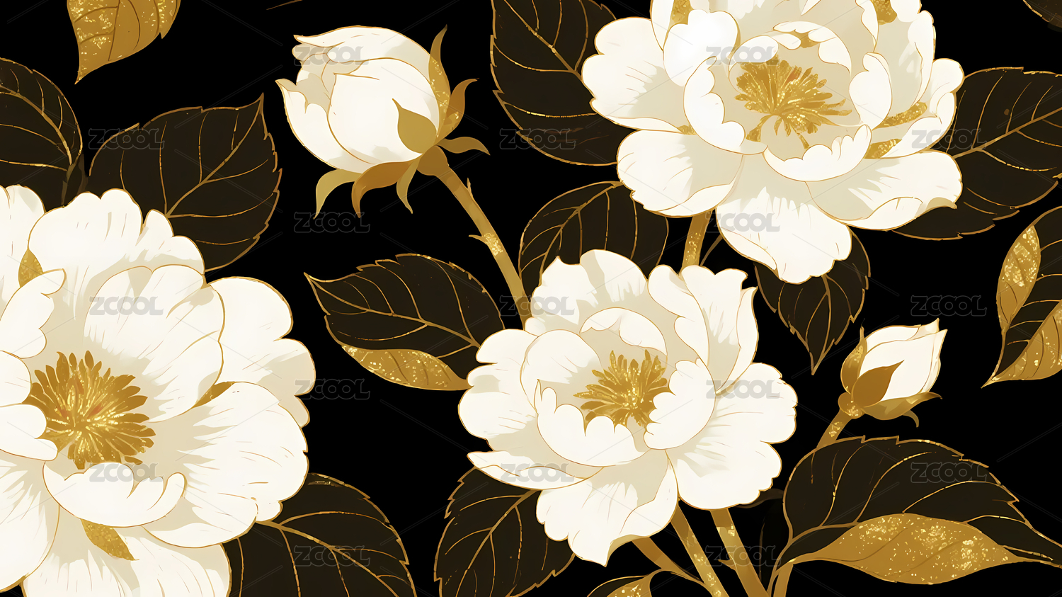 黑背景金色花叶装饰