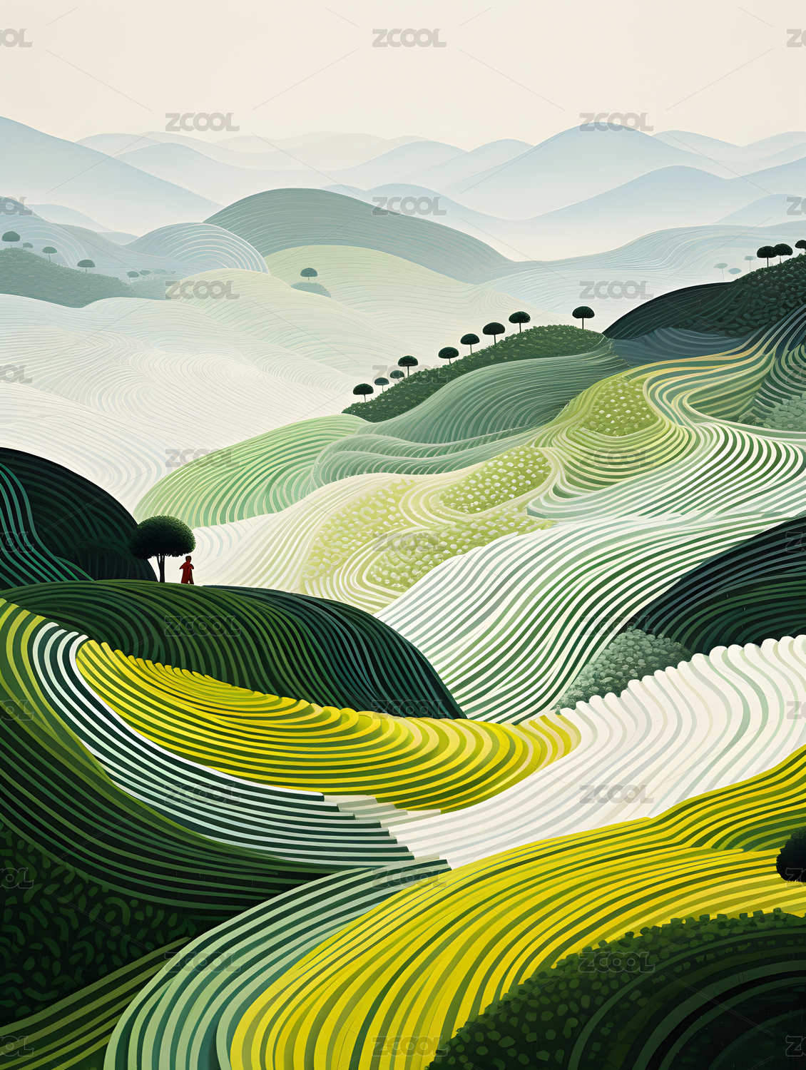 风景,户外,桃花,花开,森林,小屋,麦田,柔和,水彩,简约