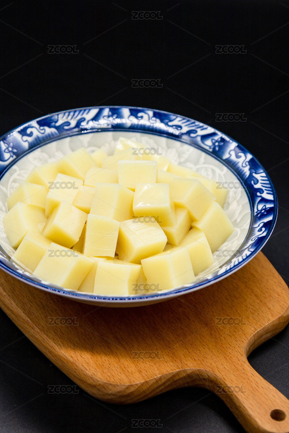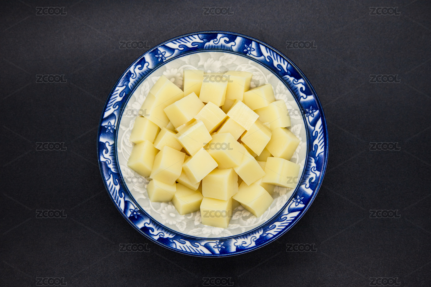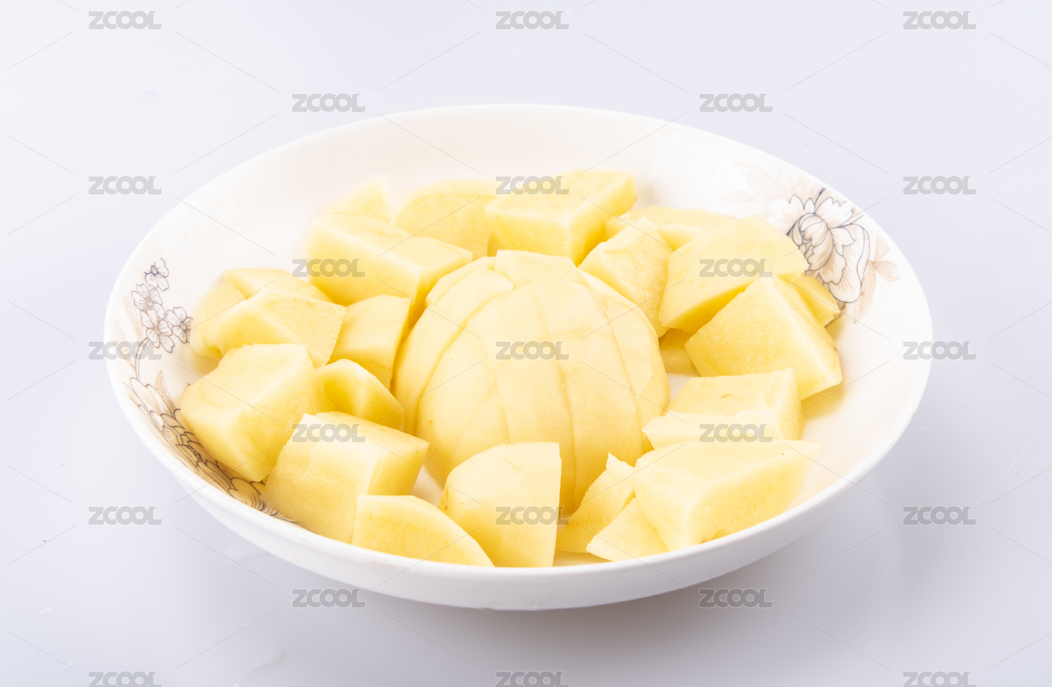 装在盘子里去掉皮的土豆块