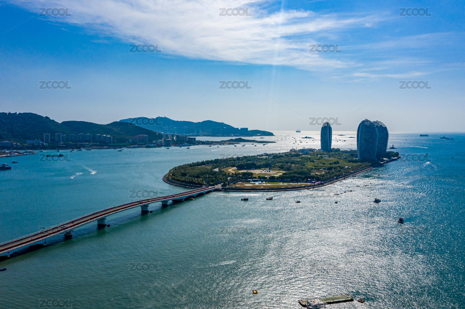 航拍海南三亚凤凰岛碧海蓝天海面吹填人工岛