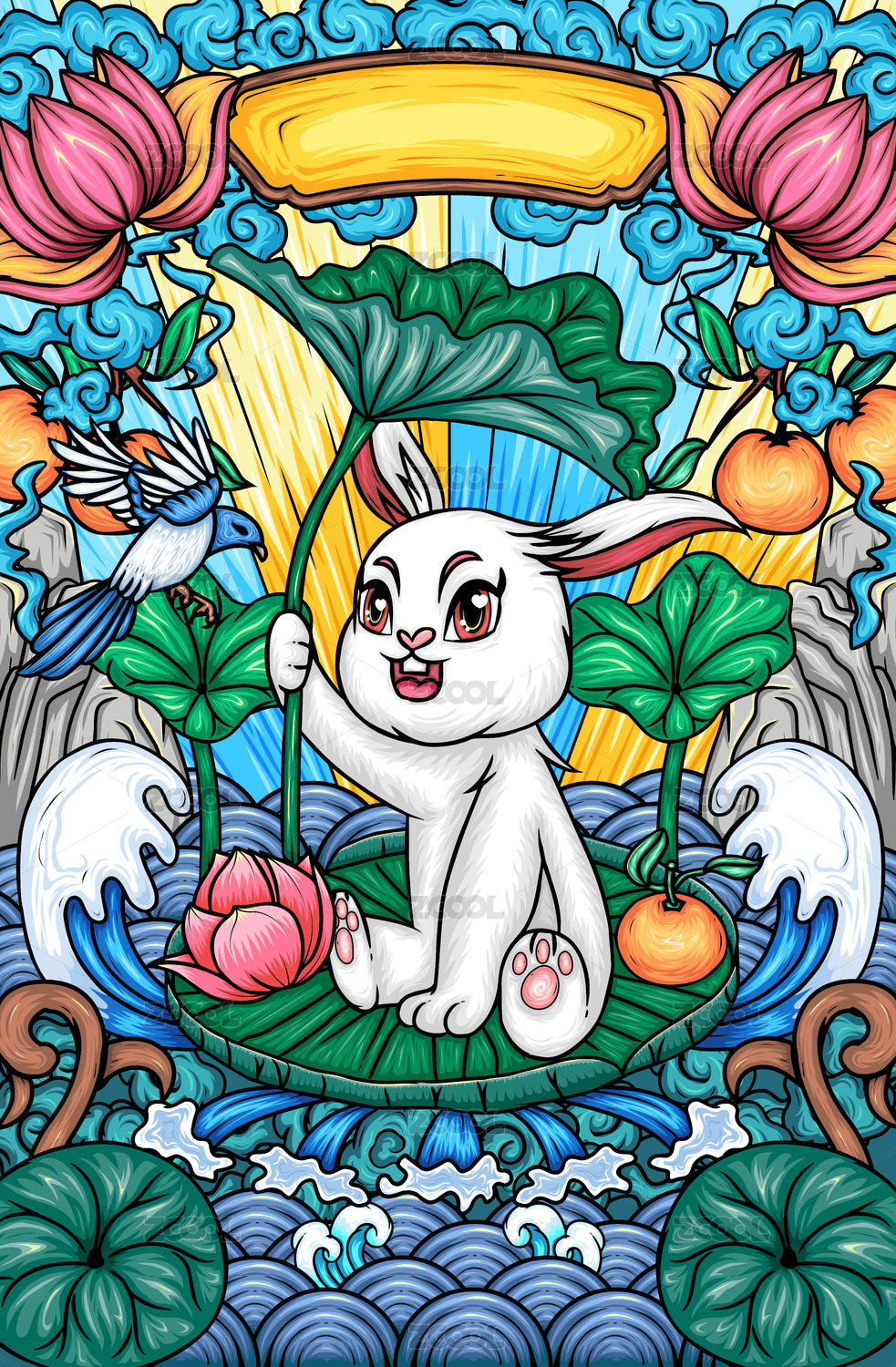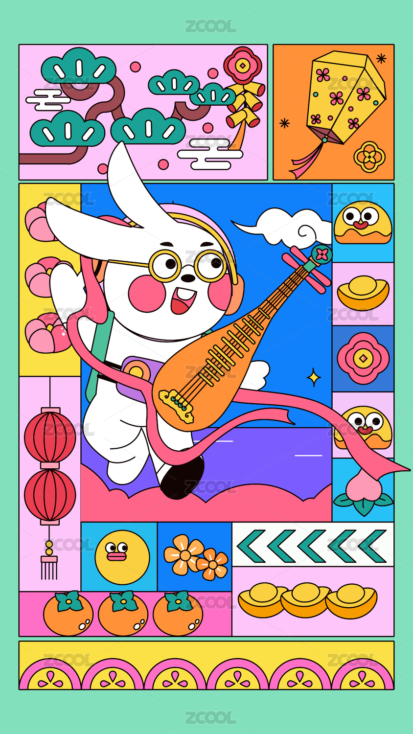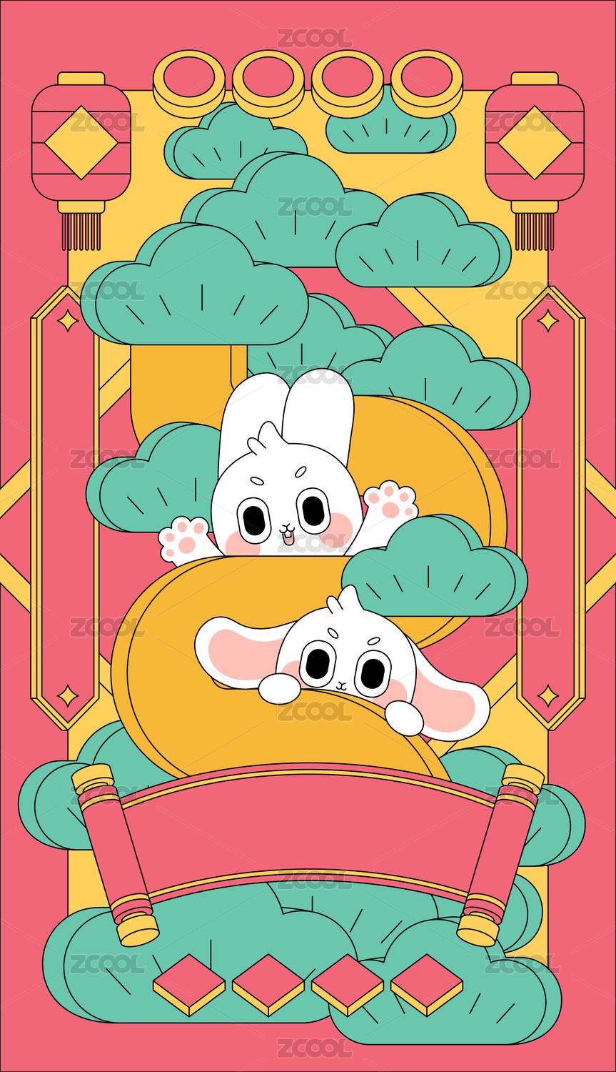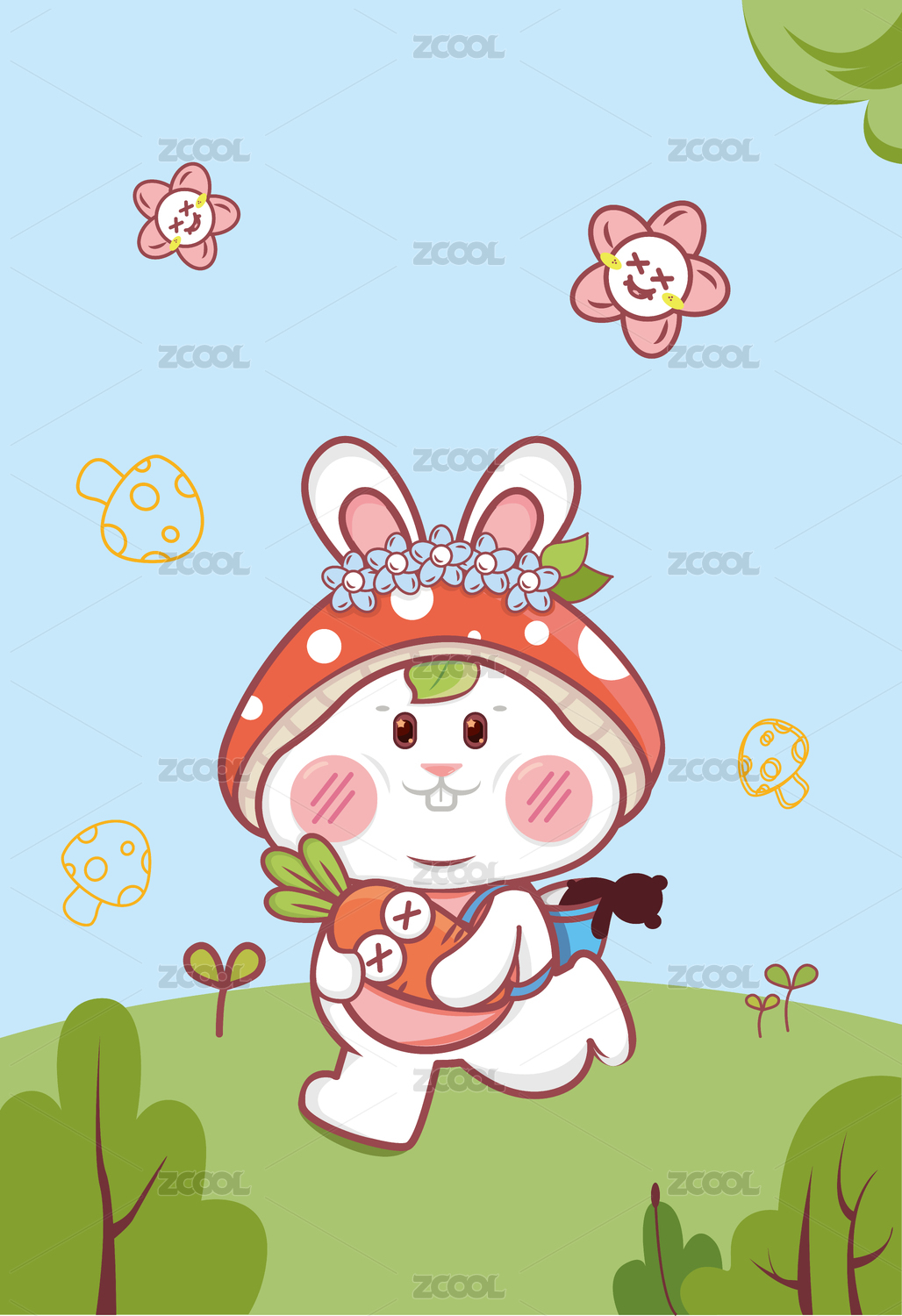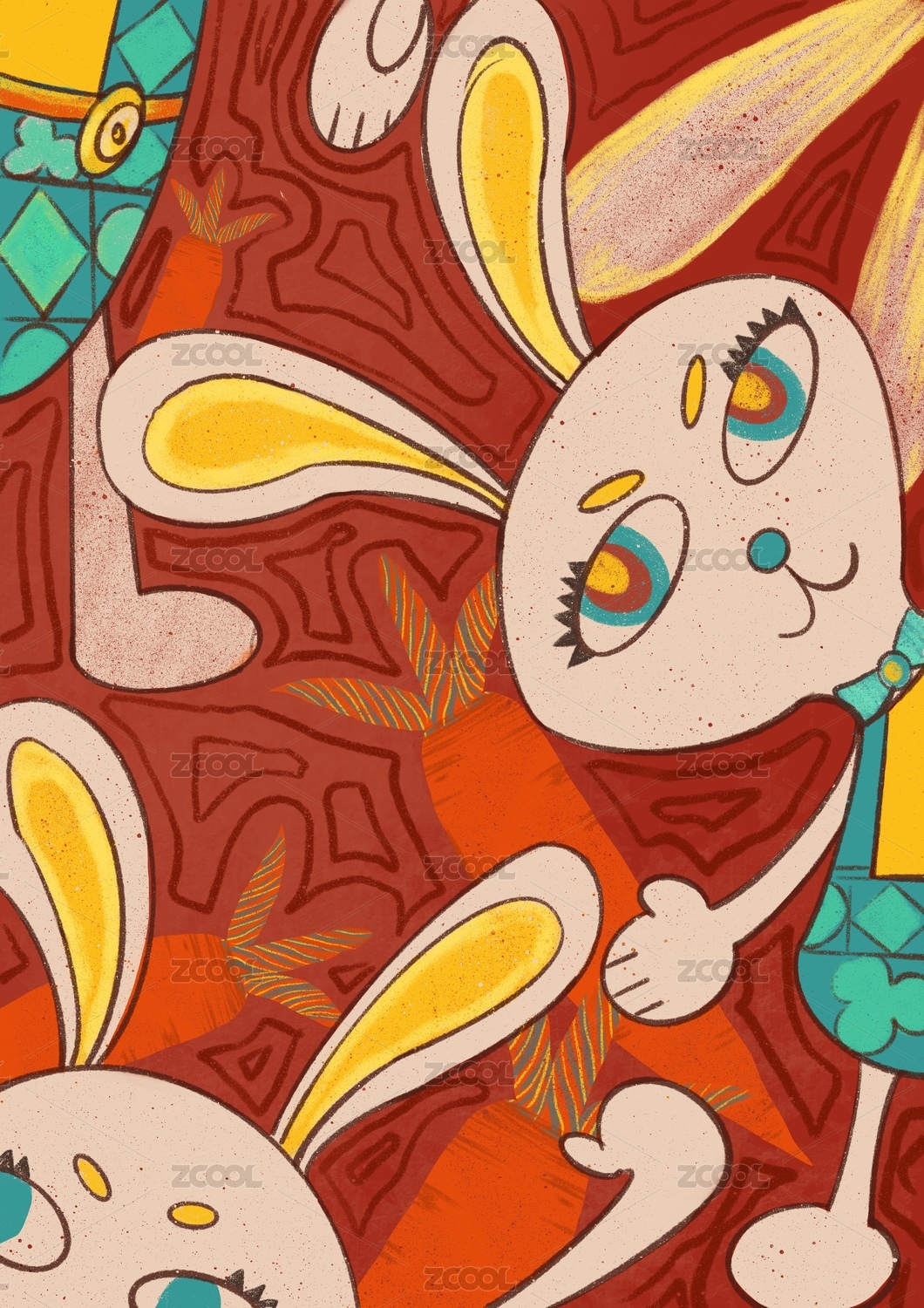 糖果色卡通兔子甜品蛋糕场景插画海报