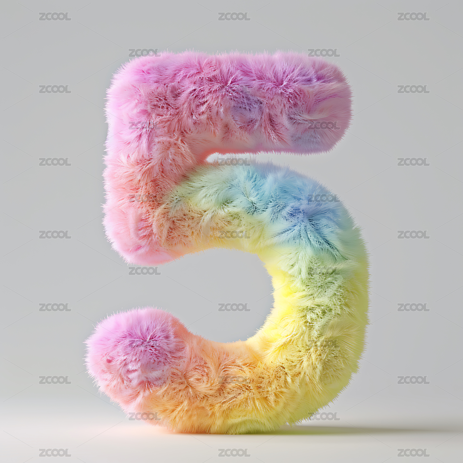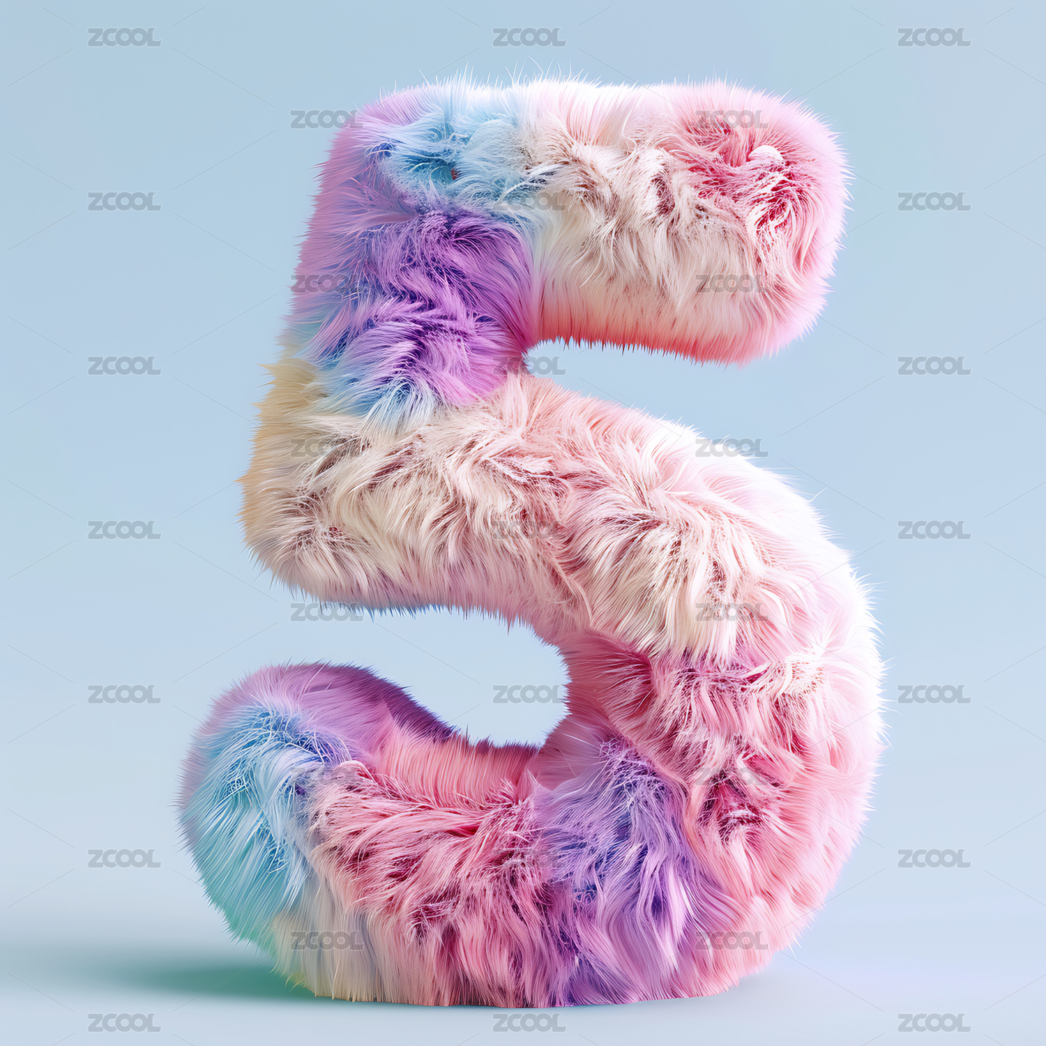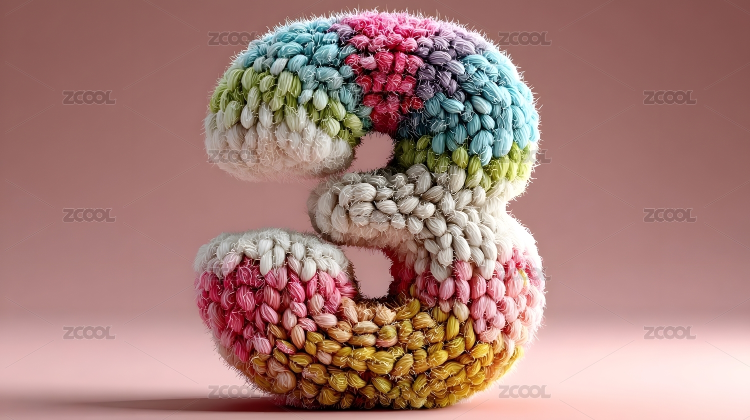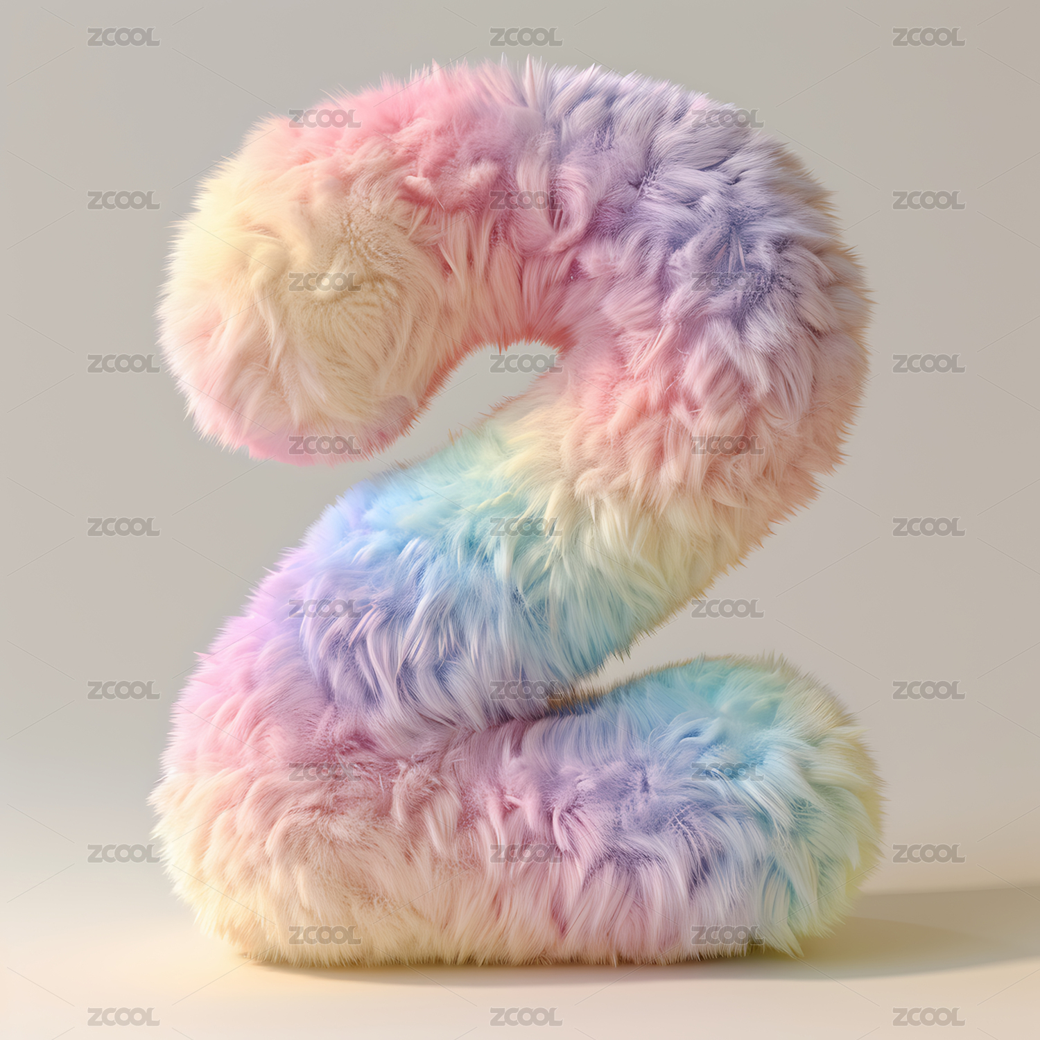 AI数字艺术,符号,毛绒,毛发,糖果,彩色,渐变,3d,c4d,可爱