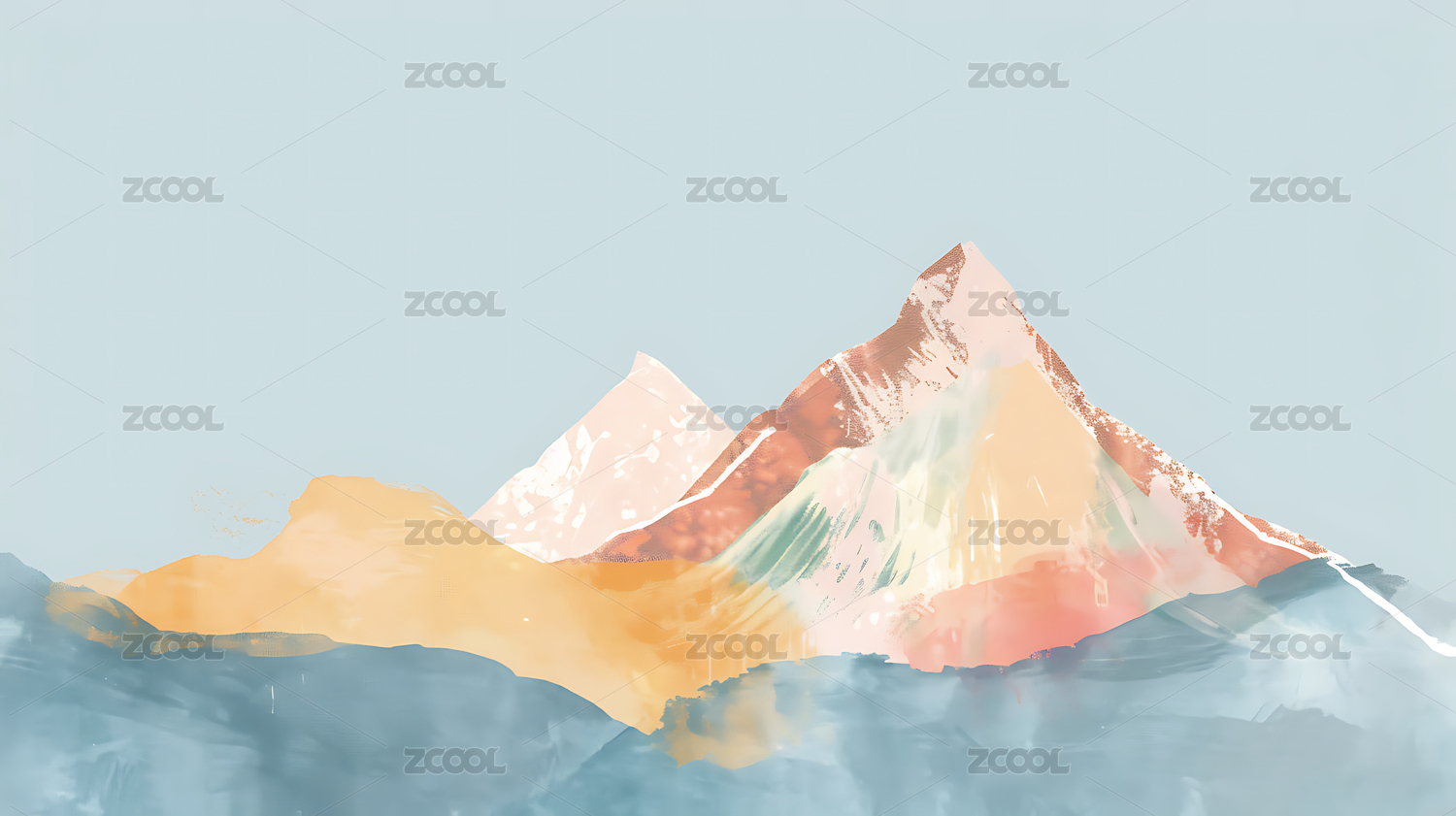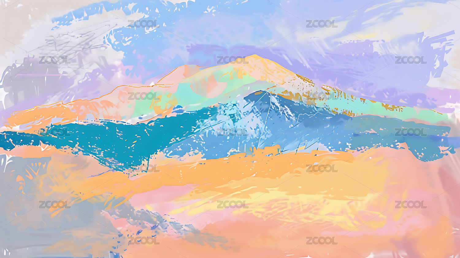 莫兰迪色极简油画山景壁纸
