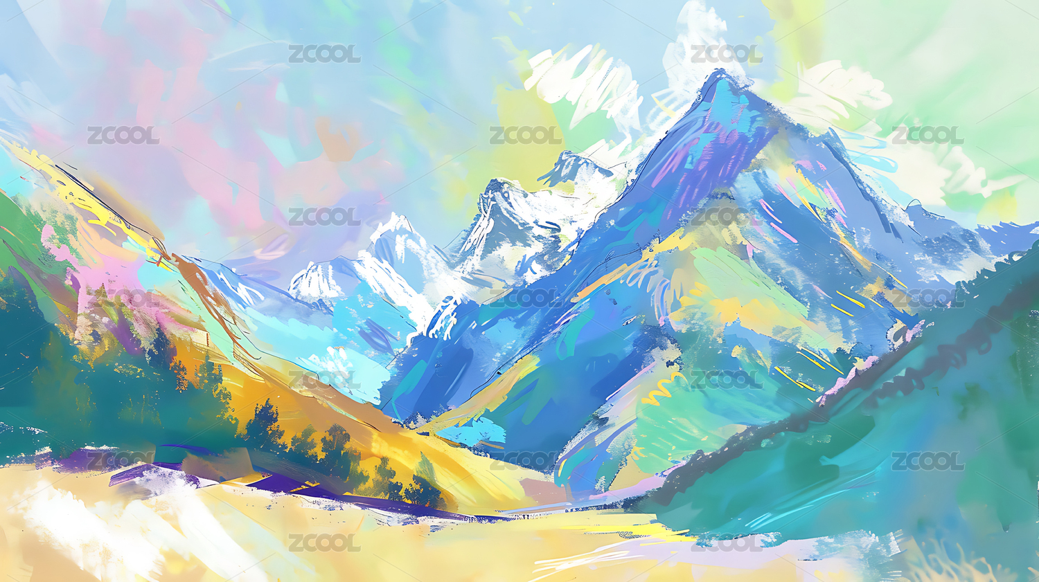 高山,自然,山,插画,水彩,水粉,山脉,雪山,油画,风景