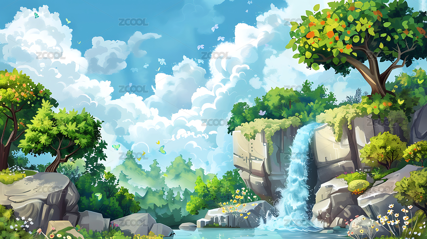 插画,卡通,游戏,动画,手游,背景,风景,自然,植物,场景