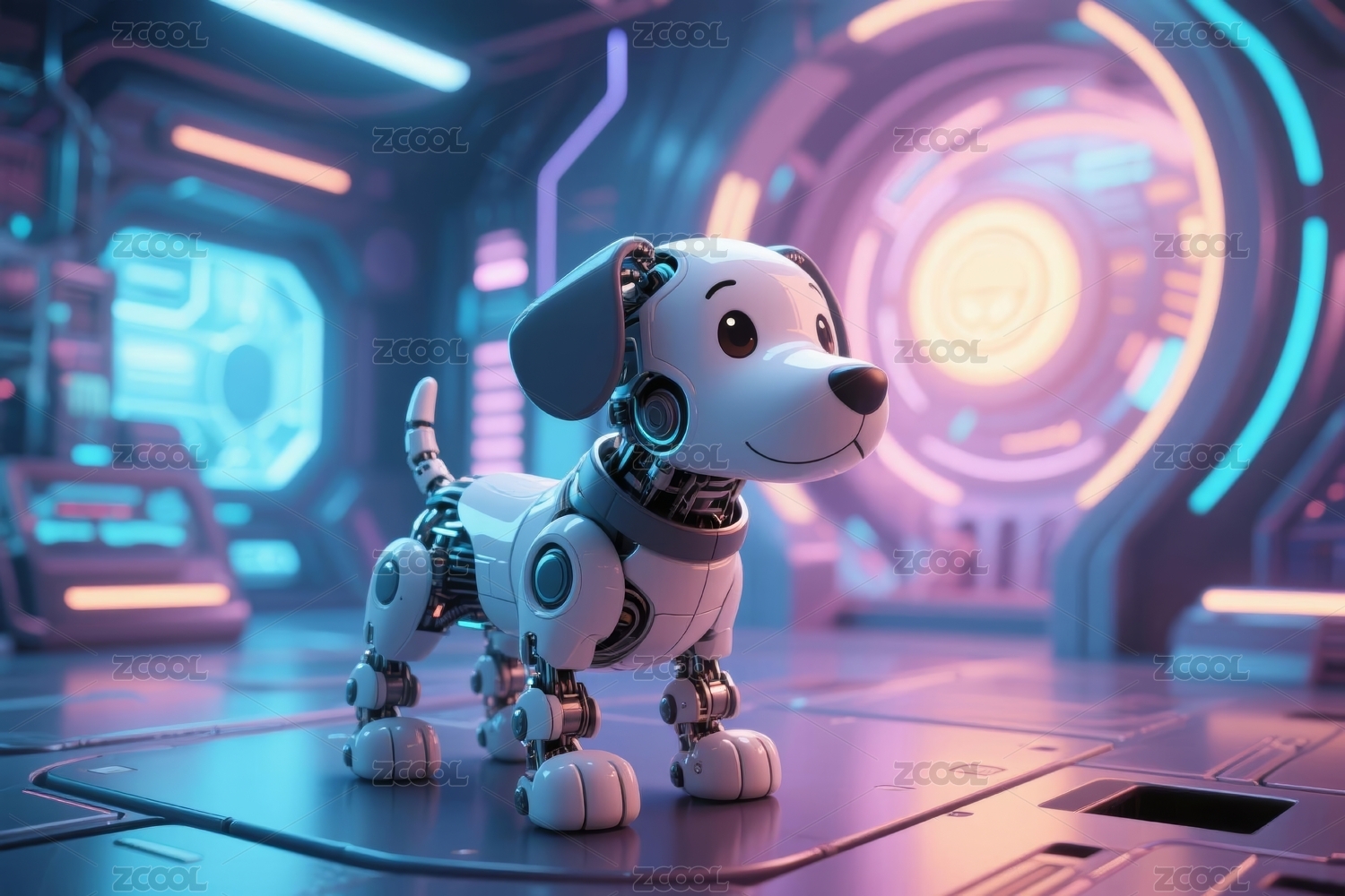 AIGCFG,赛博朋克,动物,小狗,发光,科技,科幻,未来,虚构,狗