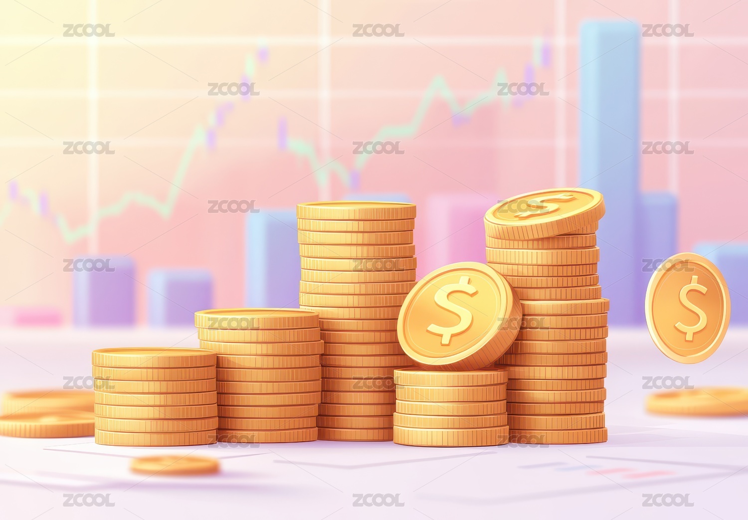 金币堆叠与增长图表