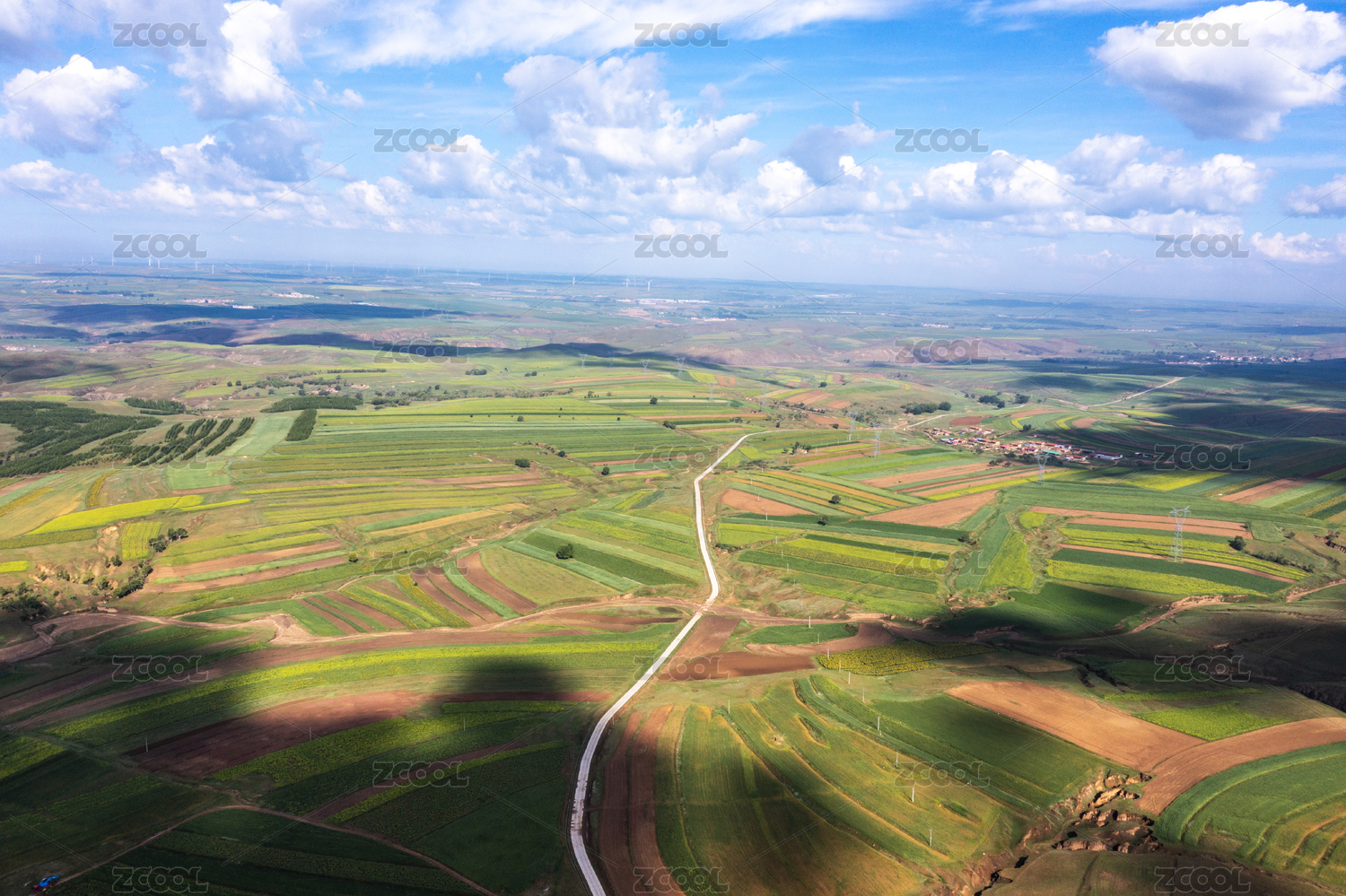 坝上的风电和田地