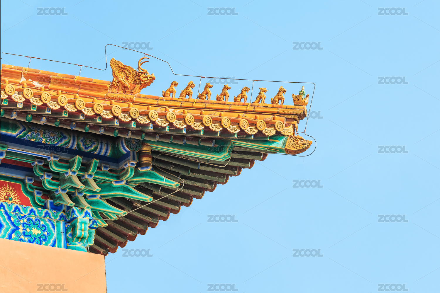 蓝天下的大殿飞檐五脊六兽,中国江苏省南京市明孝陵明楼