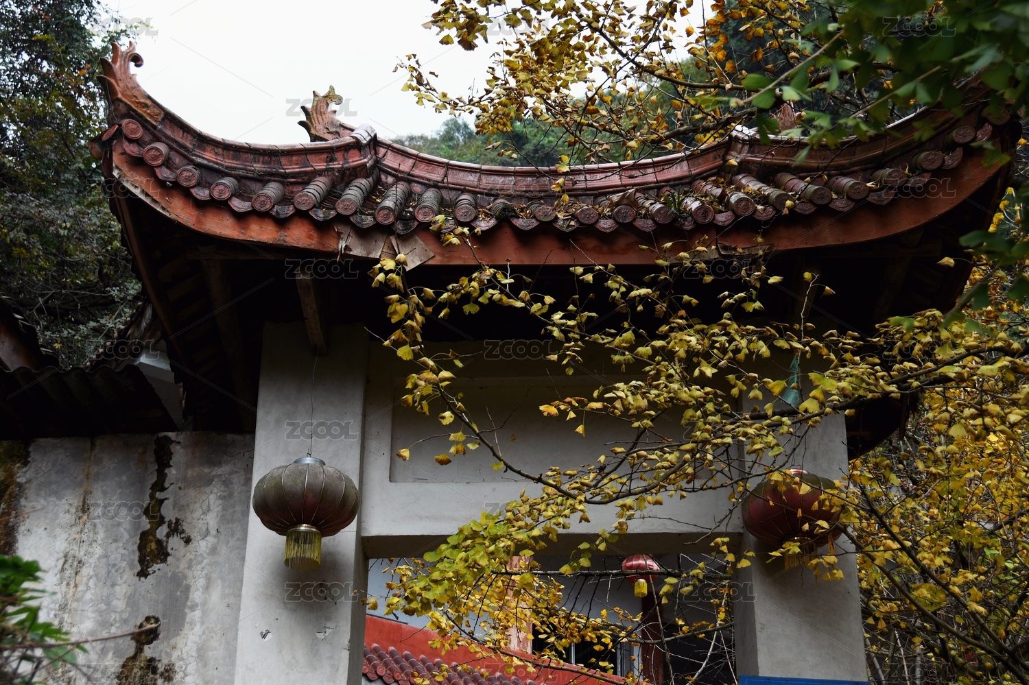 秋色中的千年古刹重庆北碚温泉寺的庙宇