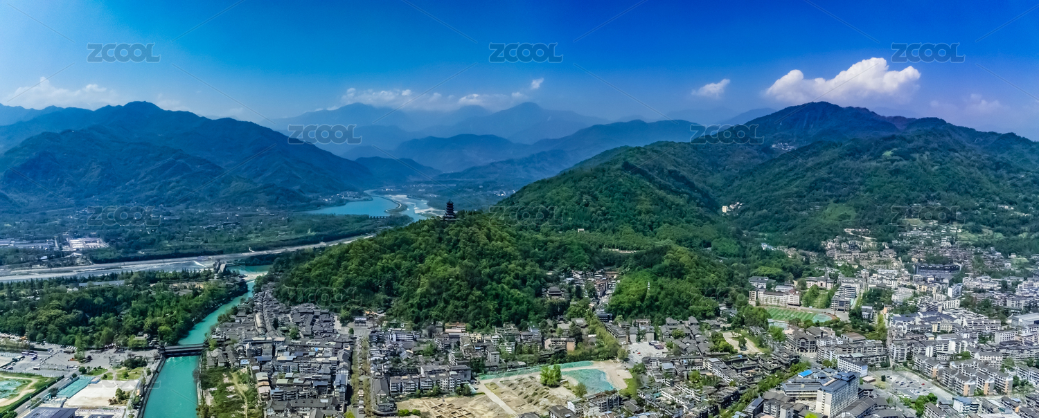 中国四川成都都江堰风光航拍