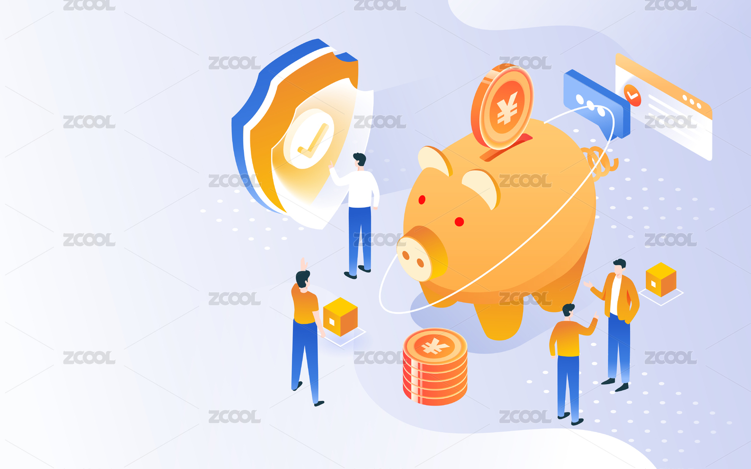 卡通存钱理财信用卡礼包金融活动背景矢量插画