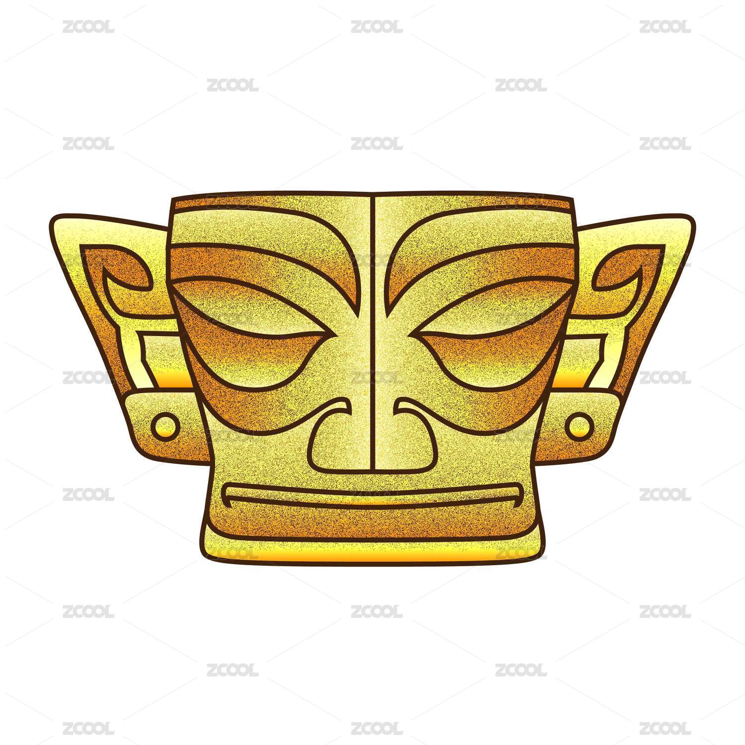 三星堆,线稿,白描,元素,插画,文物,古董,青铜,博物馆,文明