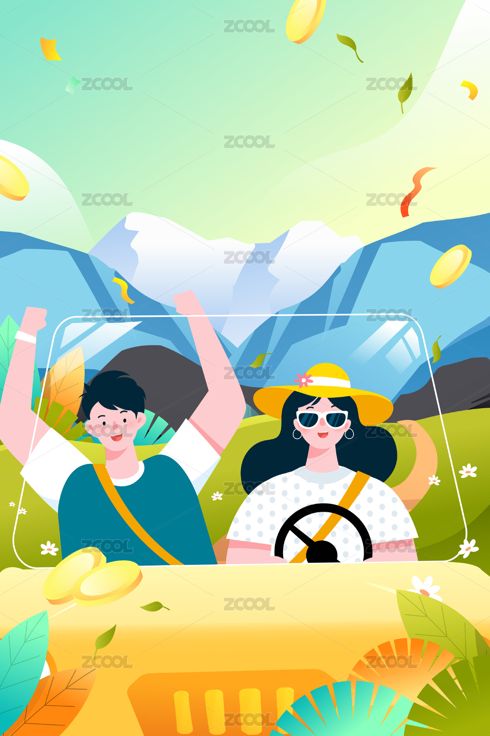 汽车旅游假期自驾游夏令营户外出行放假背景