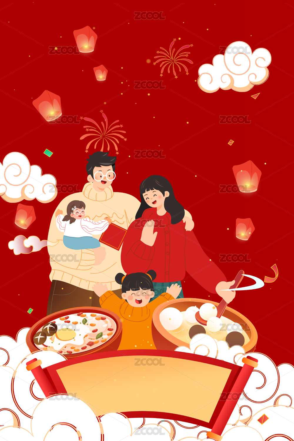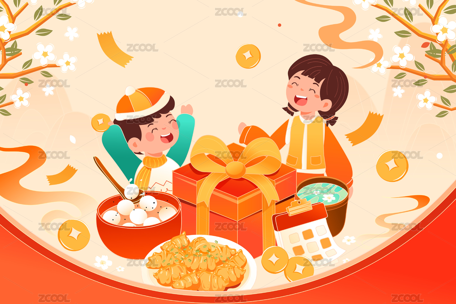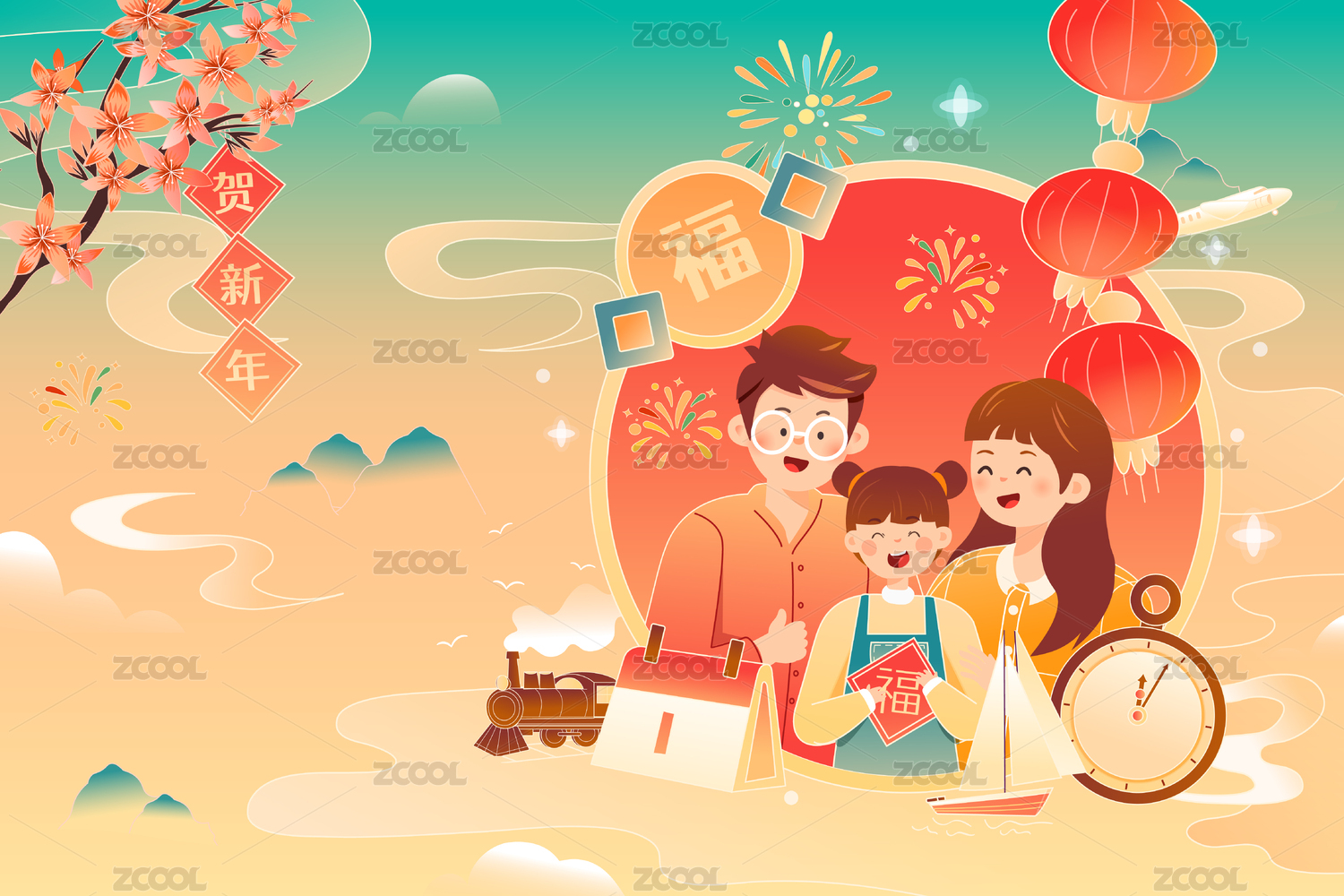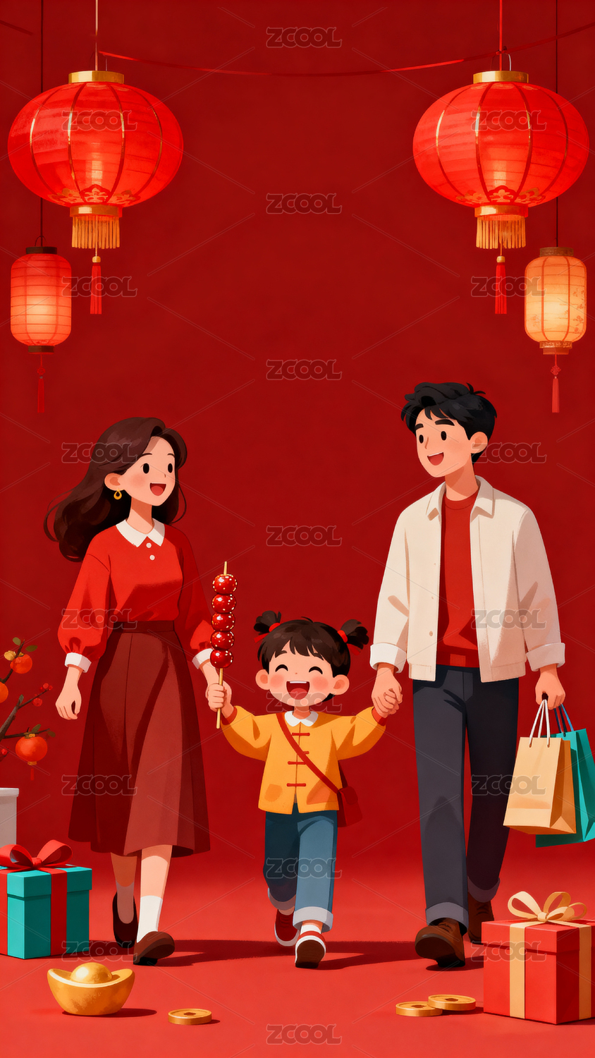矢量,卡通,渐变,扁平,插画,插图,节日,礼物,红包,家人