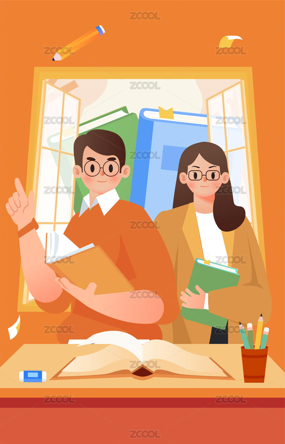 卡通手绘读书补习教育世界读书日插画