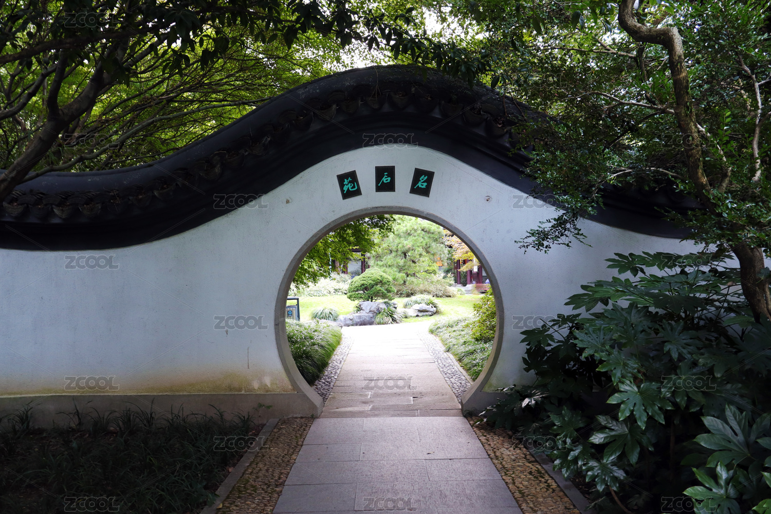 中国苏州园林的月洞门