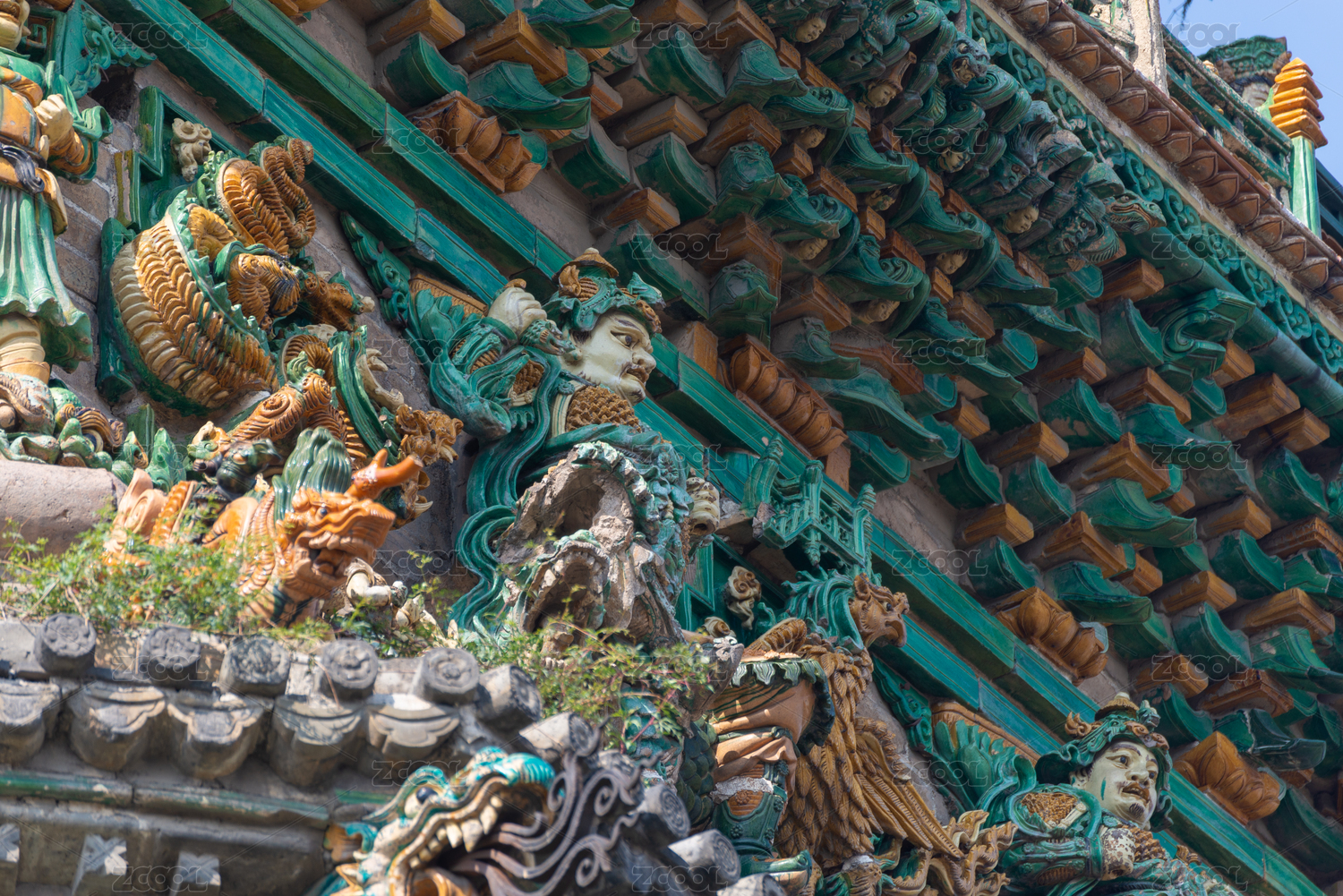 中国山西省洪洞县广胜寺飞虹塔局部琉璃特写
