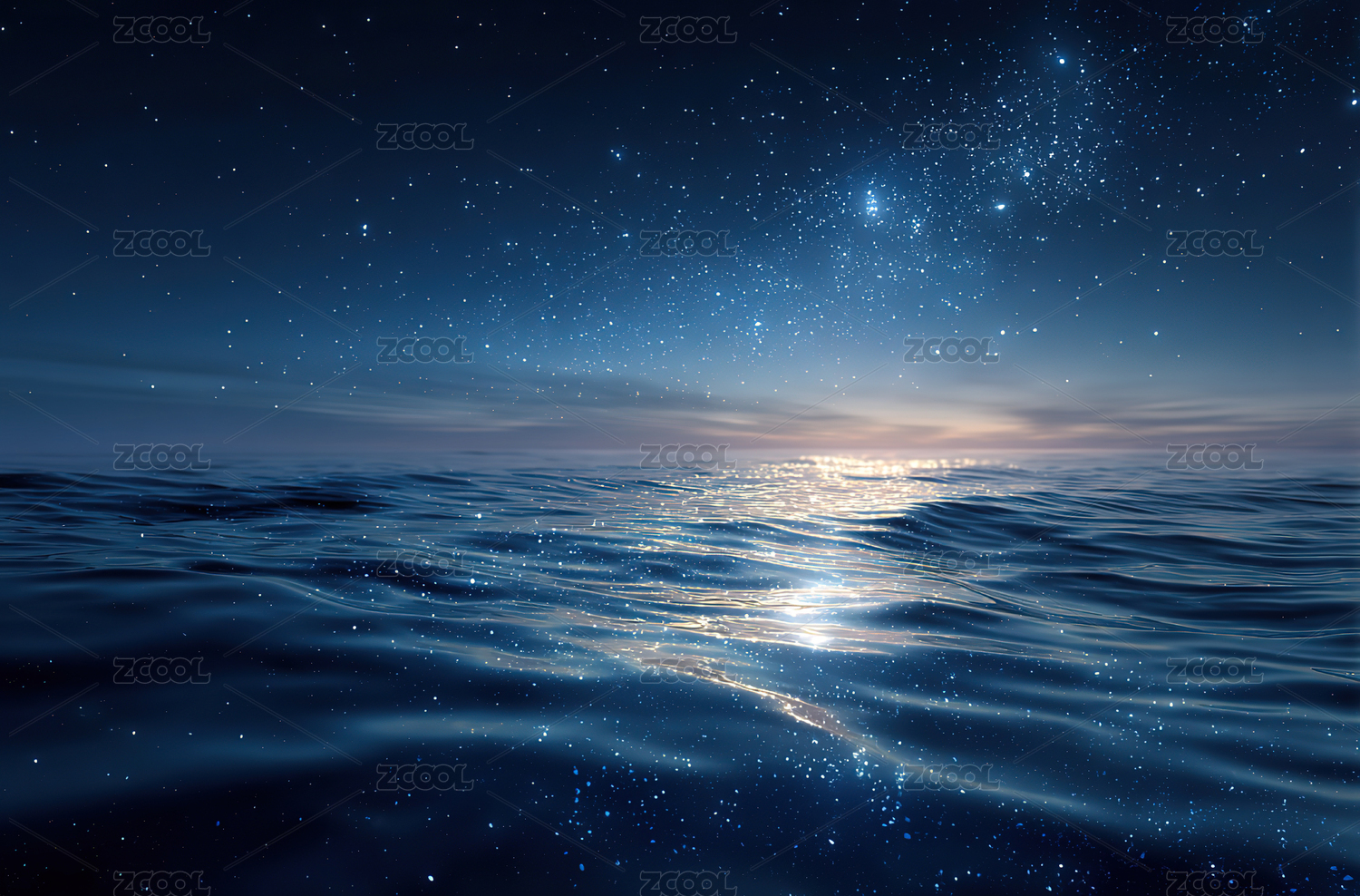 夜幕,大海,海水,波光粼粼,夜空,星空,云,梦幻