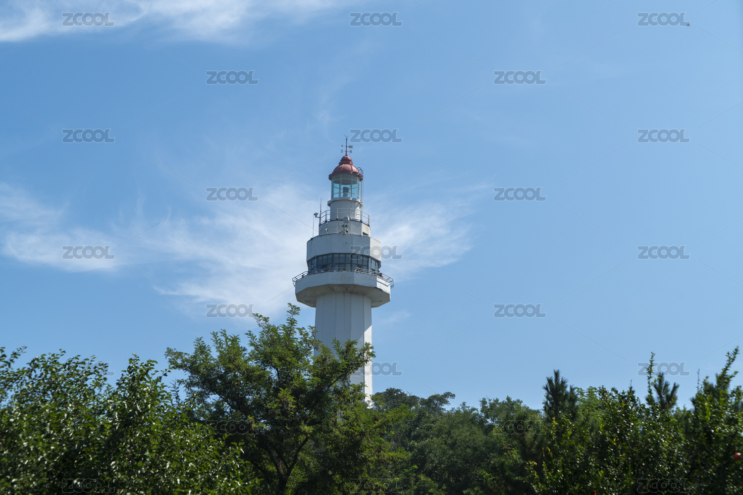 中国辽宁省大连市旅顺口区老铁山自然保护区百年灯塔风光