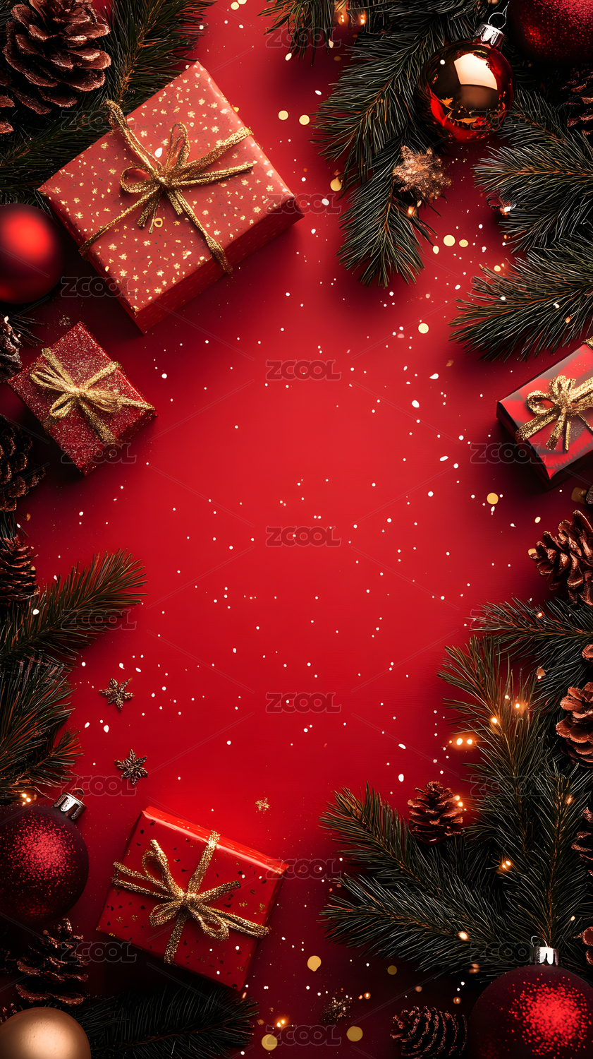 圣诞节,圣诞装饰,红色,背景,节日,松果,圣诞球,喜庆,冬季,圣诞主题
