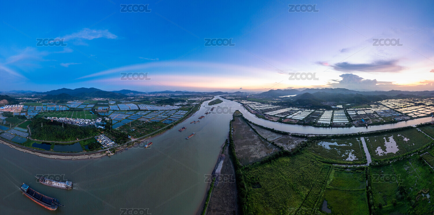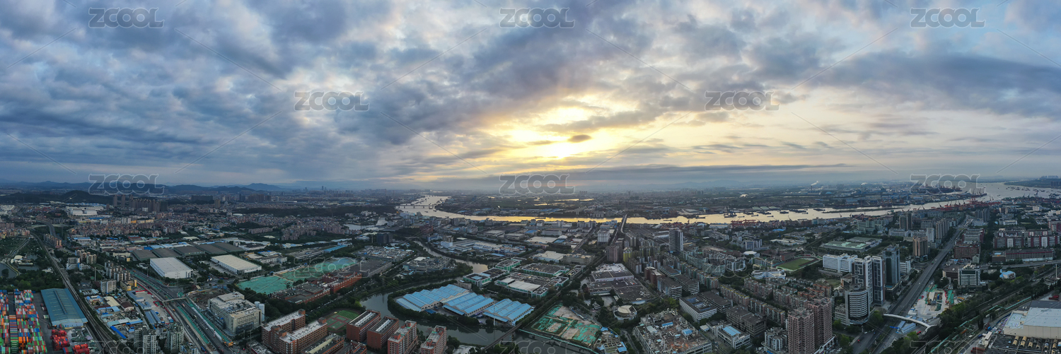 航拍中国广东省东莞麻涌镇日出风光