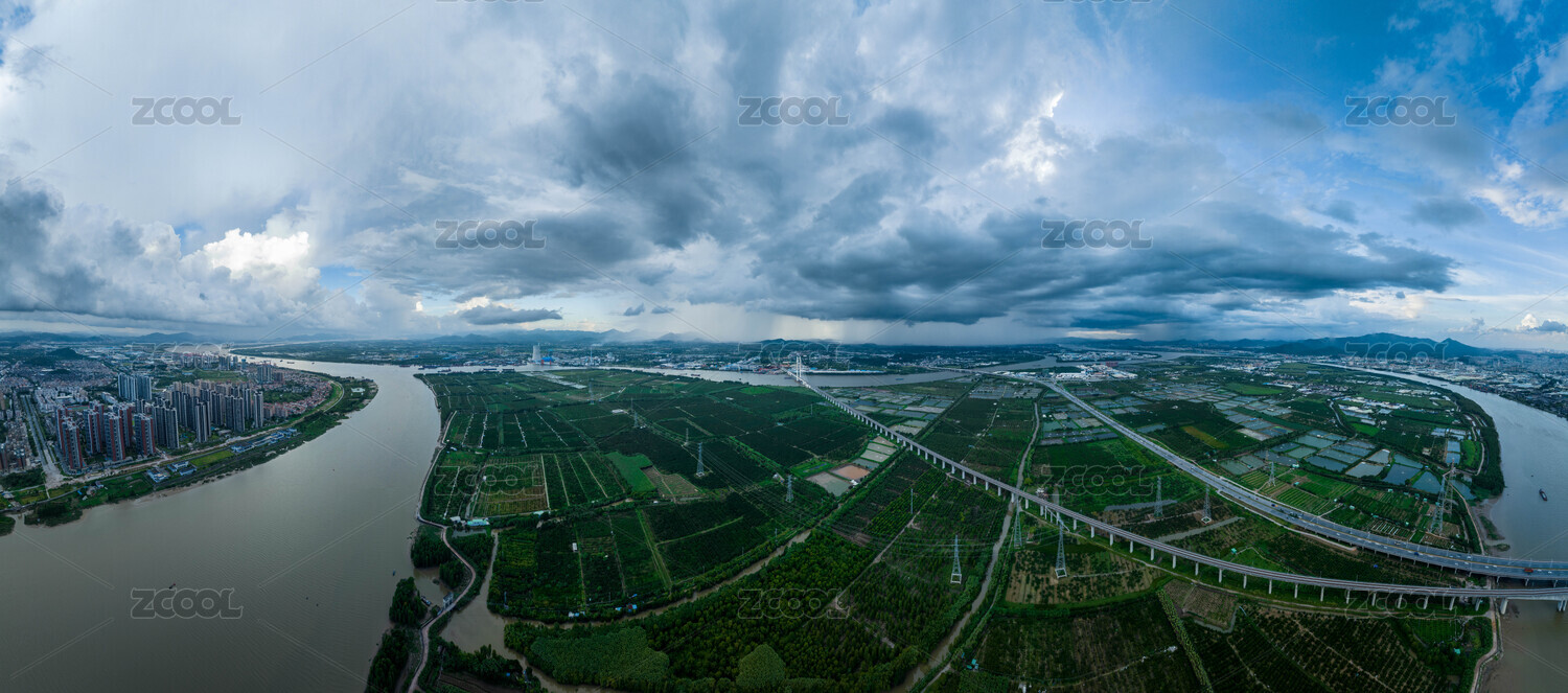 江门新会潭江小岗高铁高架桥航拍全景图