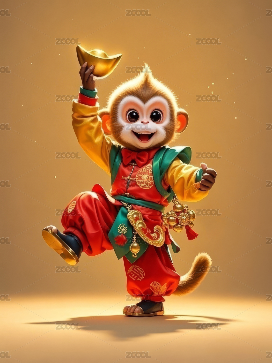 春节,喜庆,生肖,卡通,3D,IP,拟人,可爱,猴,生肖猴