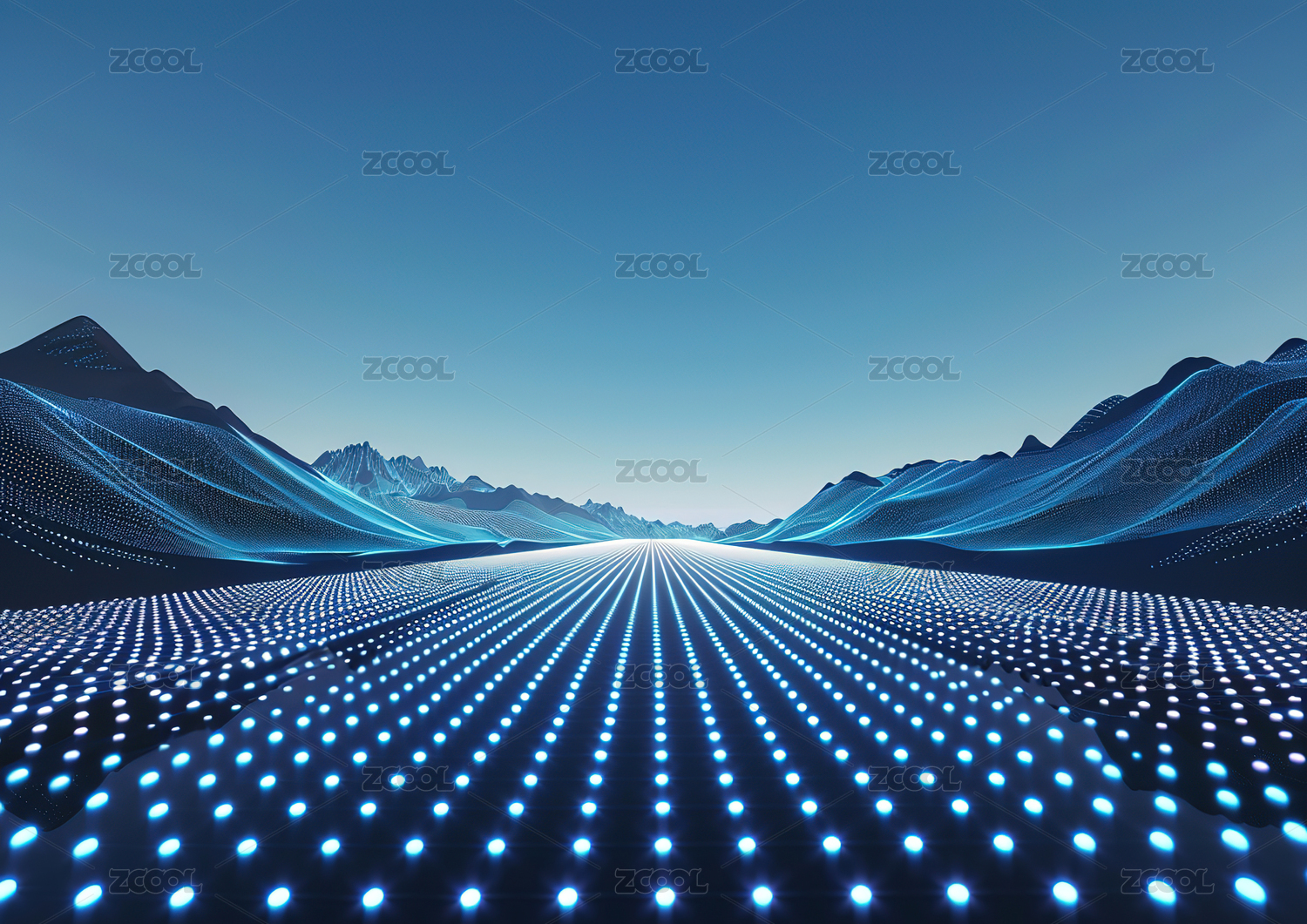 3D渲染山脉山峰公路道路科技背景抽象曲线