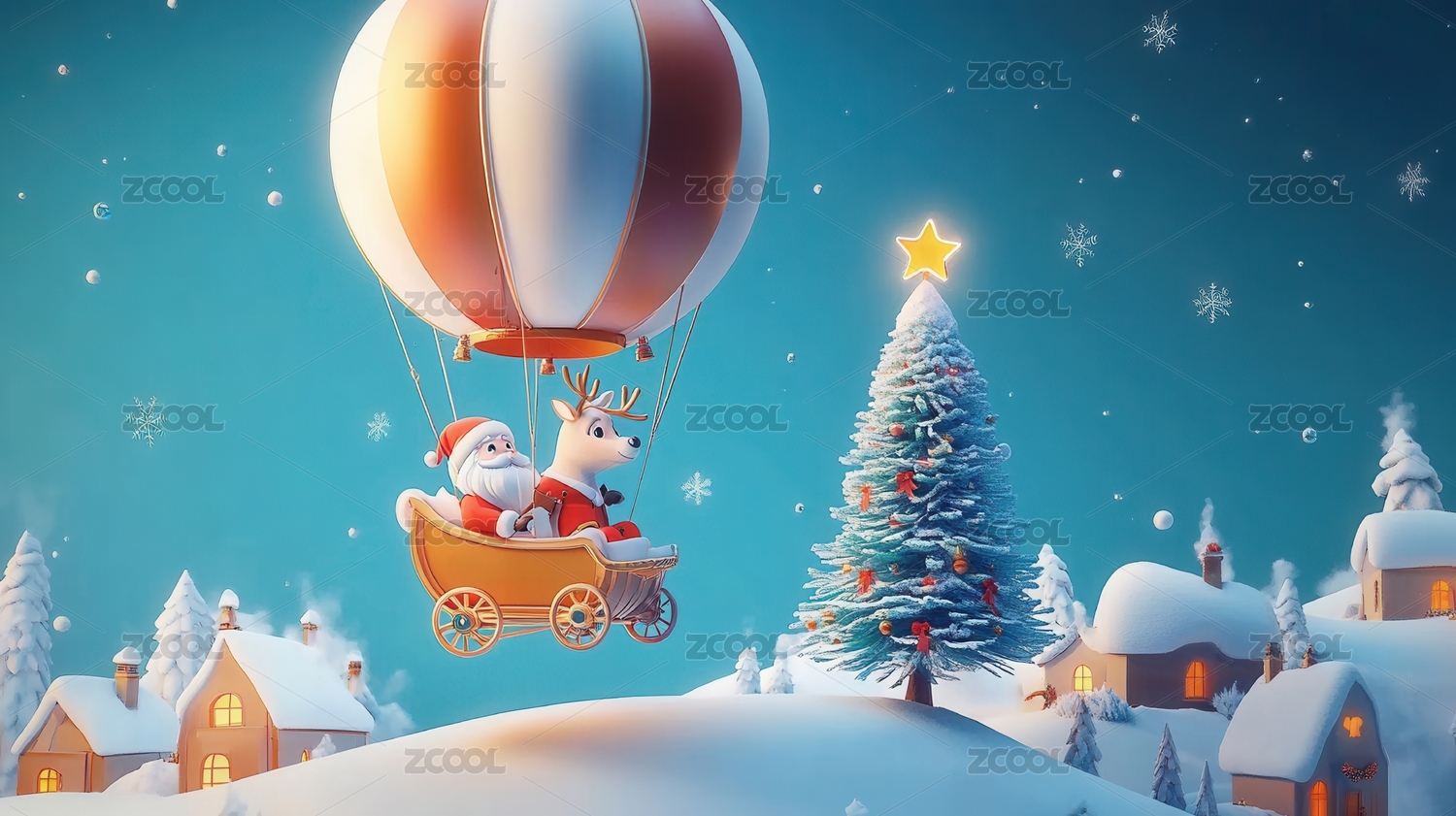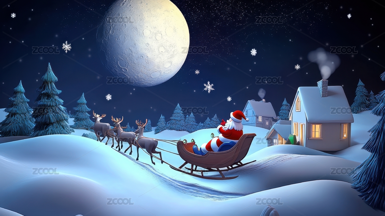 圣诞老人和驯鹿的雪橇