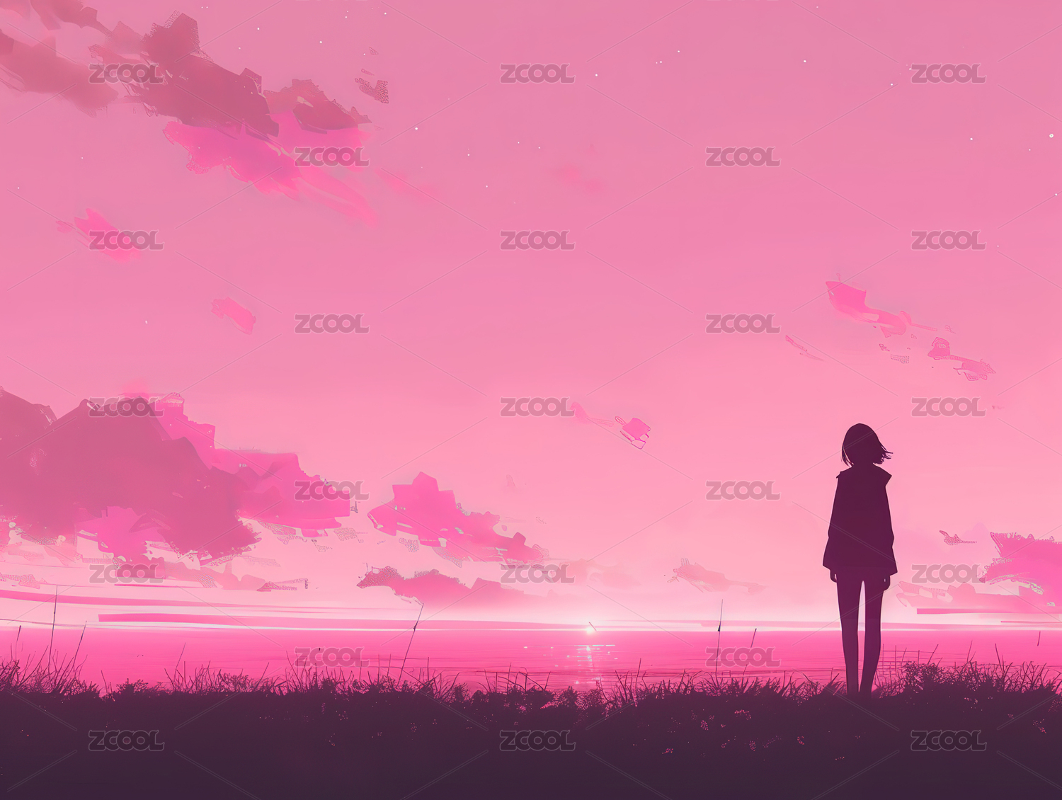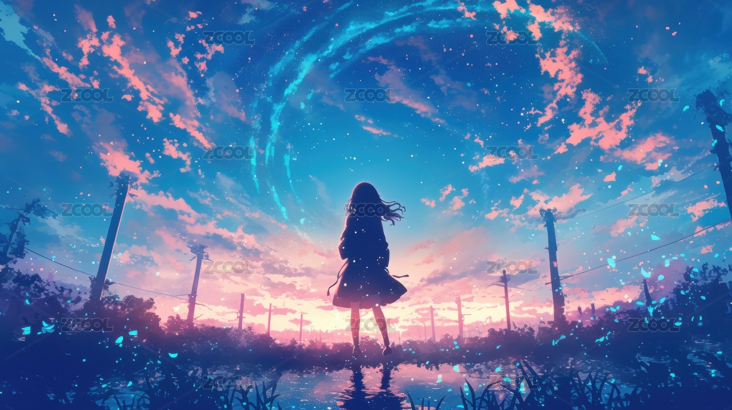 浪漫,风景,绘画,插画,动漫,宁静,景色,艺术,少女,天空