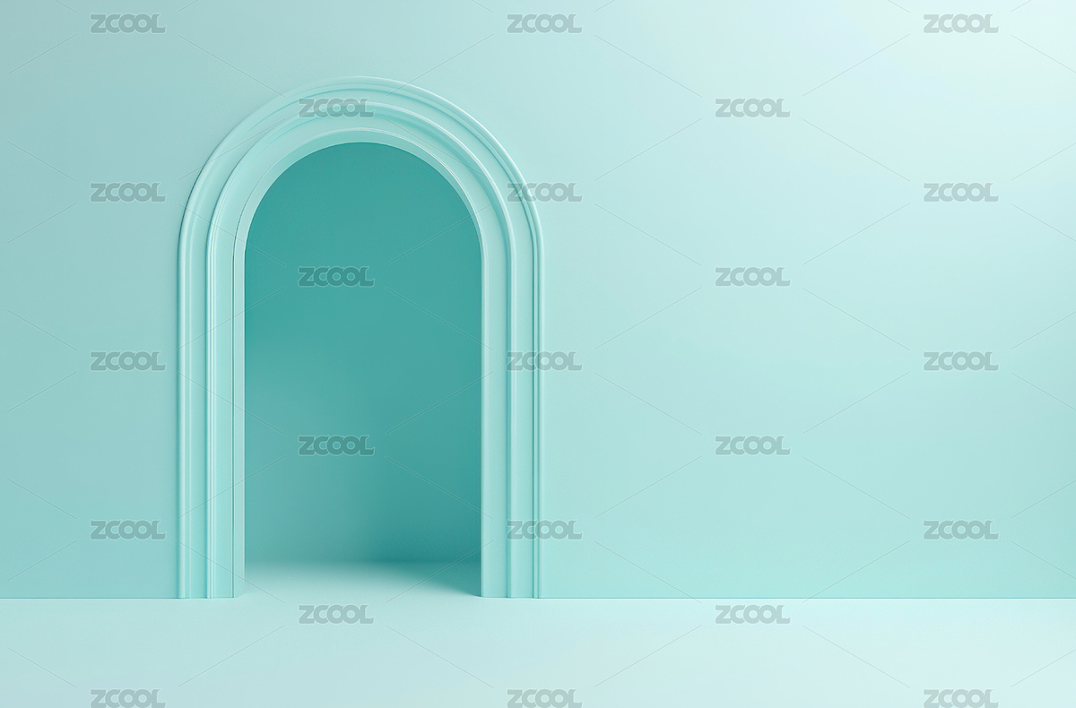 简约蓝色背景下的拱形门洞